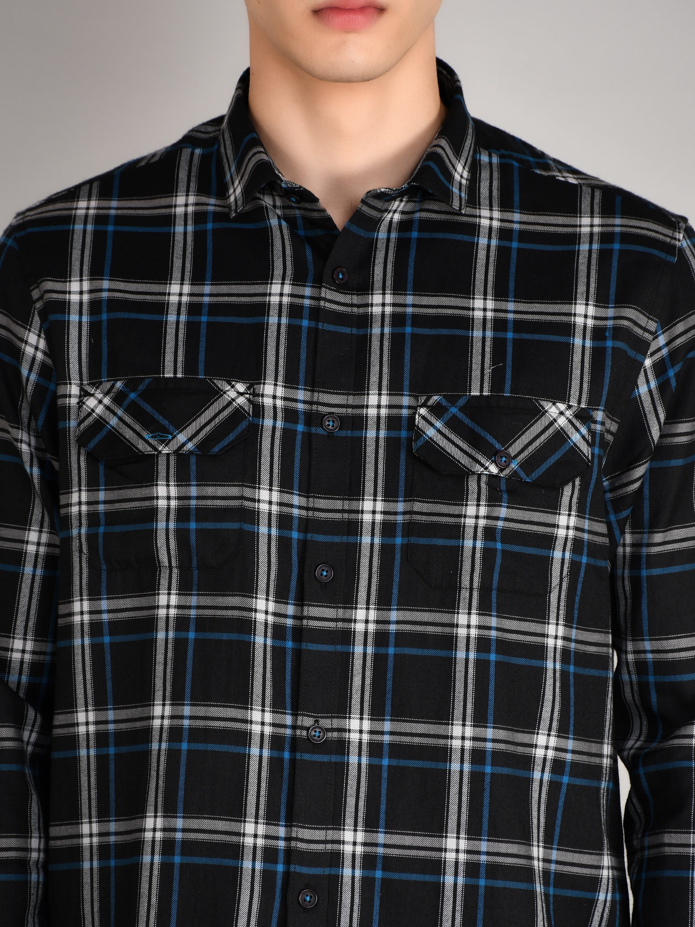 Tim Paris Mens Black Checkered Shirt In Pure Cotton With A Regular Fit. This Shirt Blends Comfort With Style Effortlessly.
