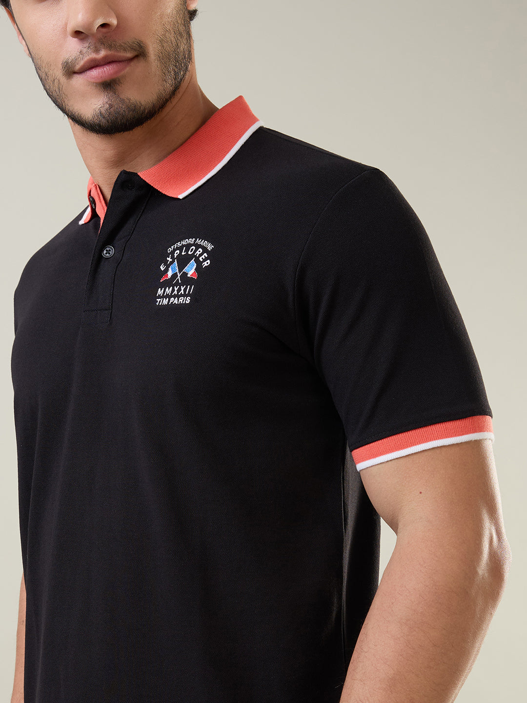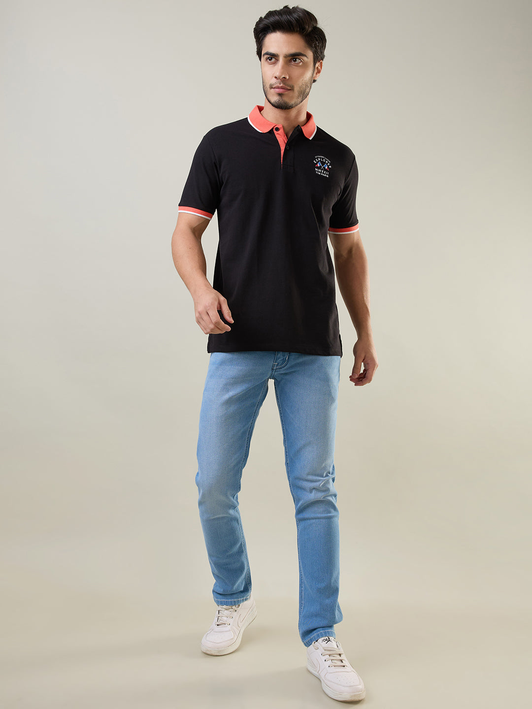 Tim Paris Mens Black Solid Polo Neck In Cotton Blend With A Regular. This Polo Neck Blends Comfort With Style Effortlessly.