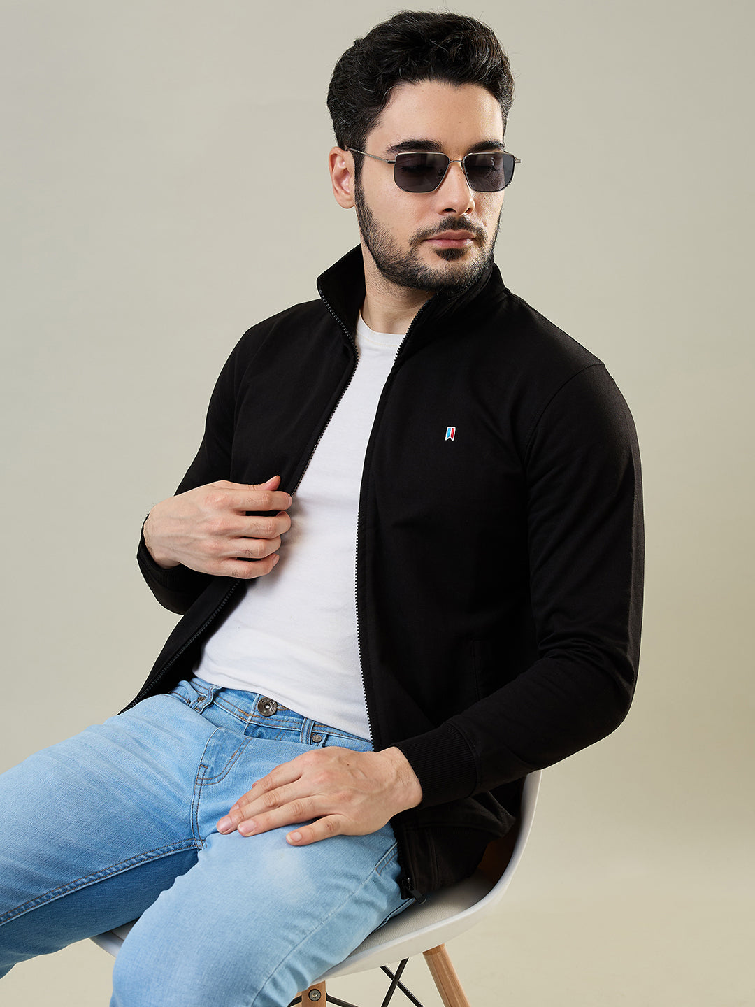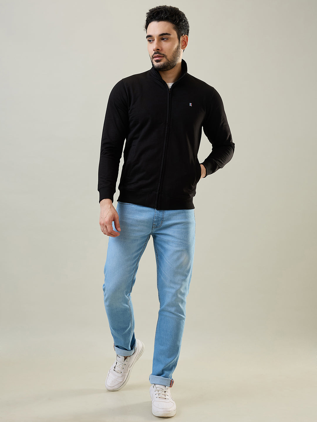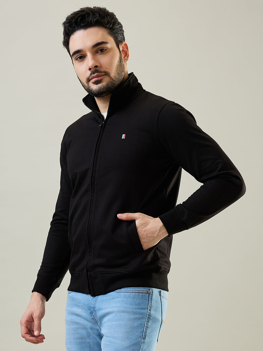 Tim Paris Men's Black Solid Sweatshirt In Cotton Blend With A Regular Fit. This Sweatshirt Blends Comfort With Style Effortlessly With The Style Effortlessly