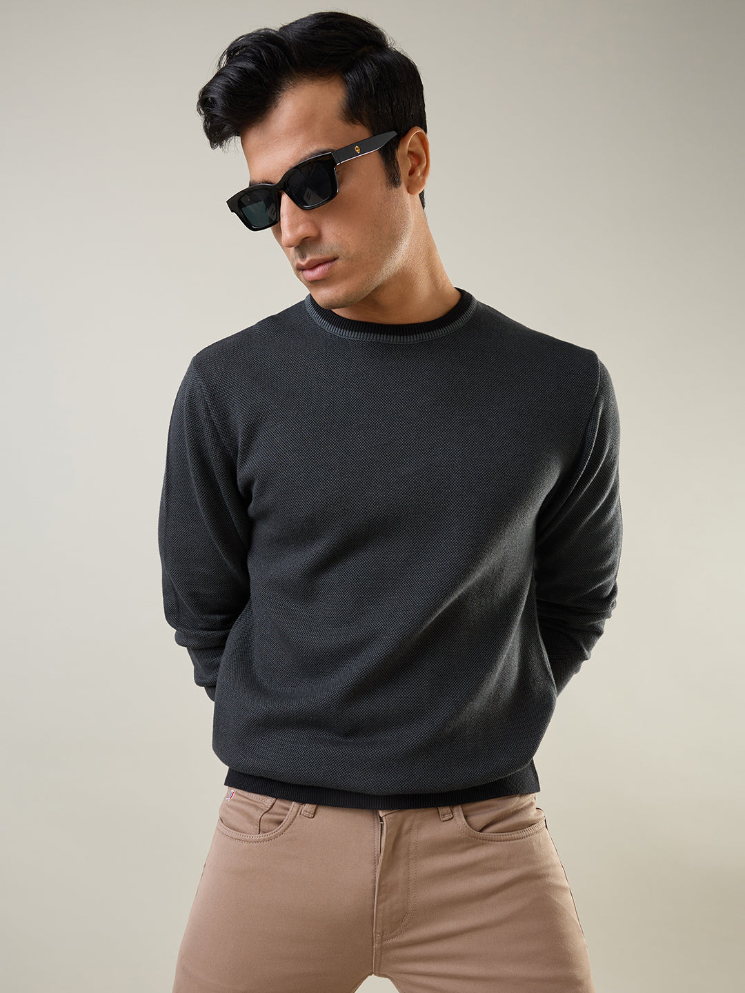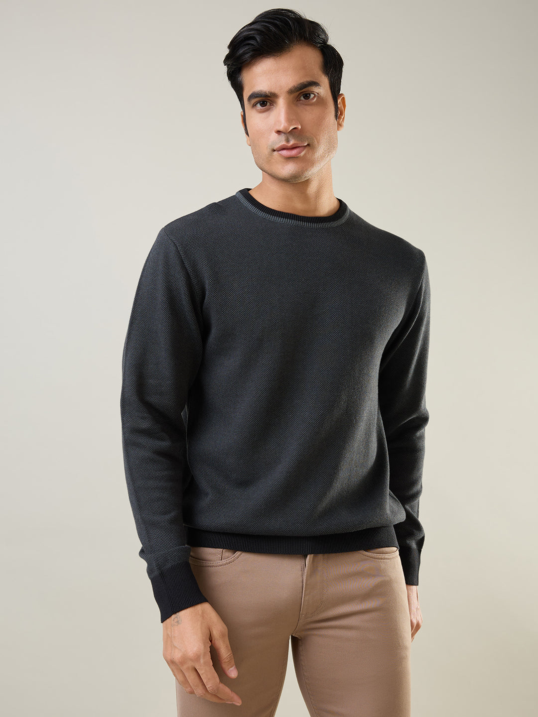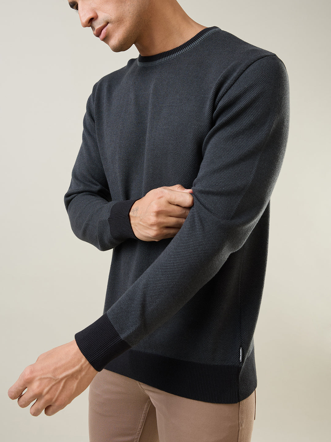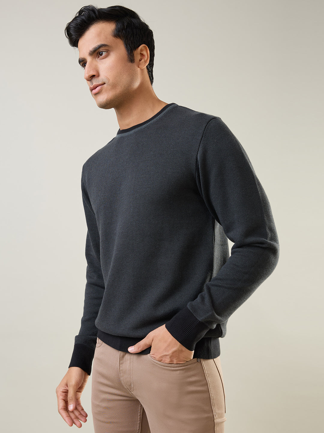 Tim Paris Mens Black Structure Pullover In Pure Cotton With A Regular Fit. This Pullover Blends Comfort With Style Effortlessly With The Style Effortlessly