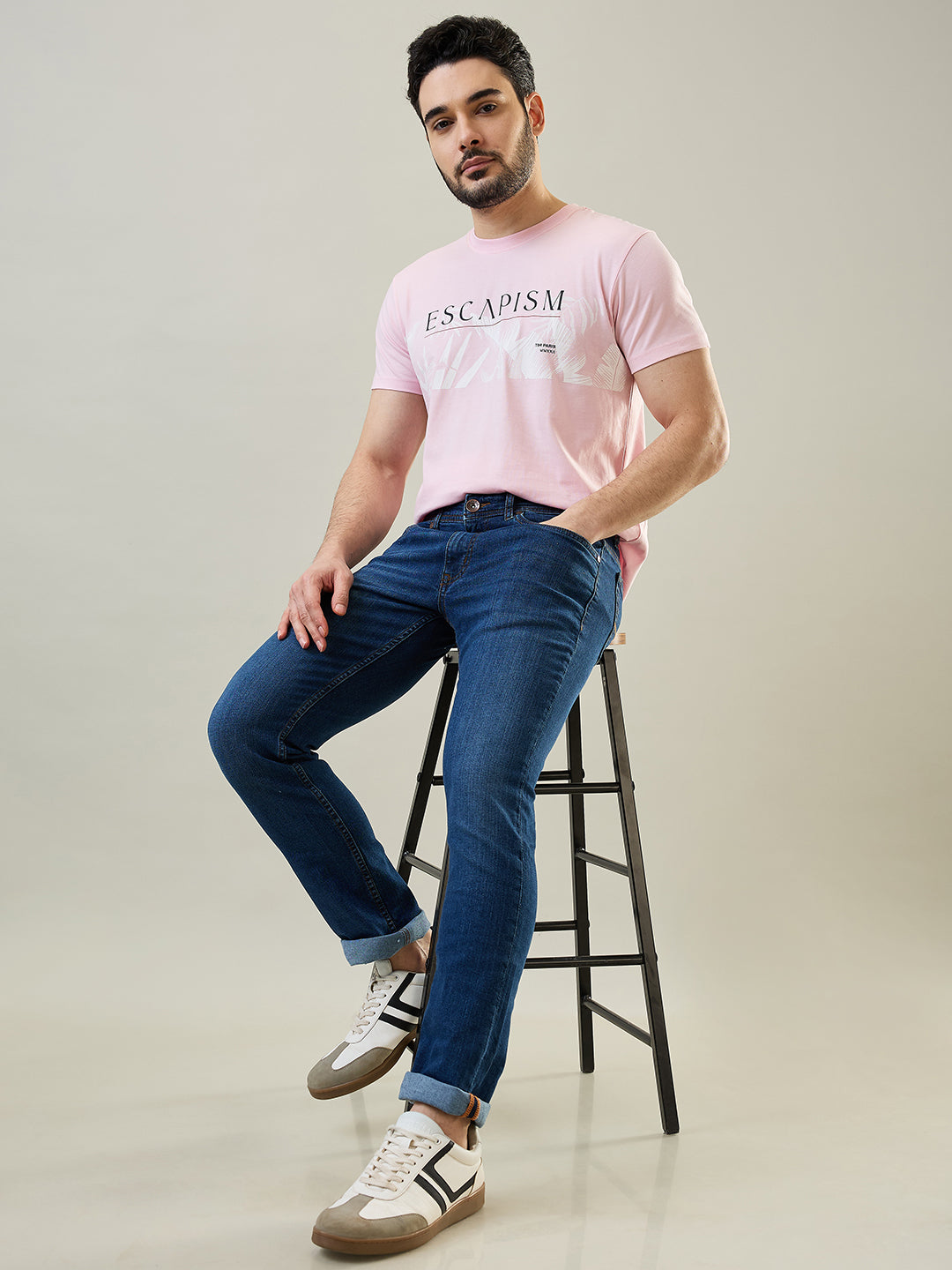 Tim Paris Mens Medium Indigo Solid Jeans In Cotton Blend With A Ferdinand Slim Tapered Fit .This Jeans Blends Comfort With Style Effortlessly.