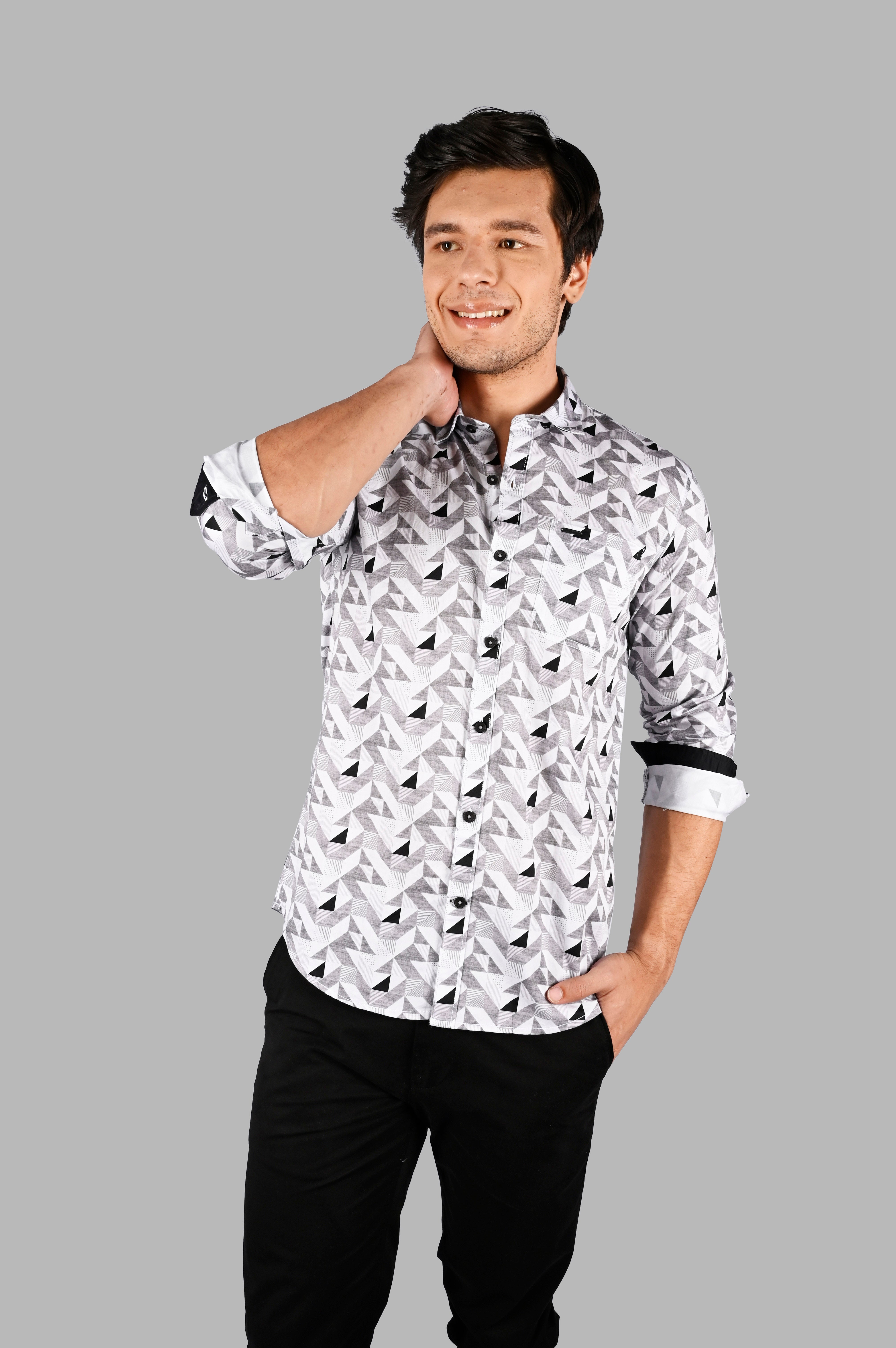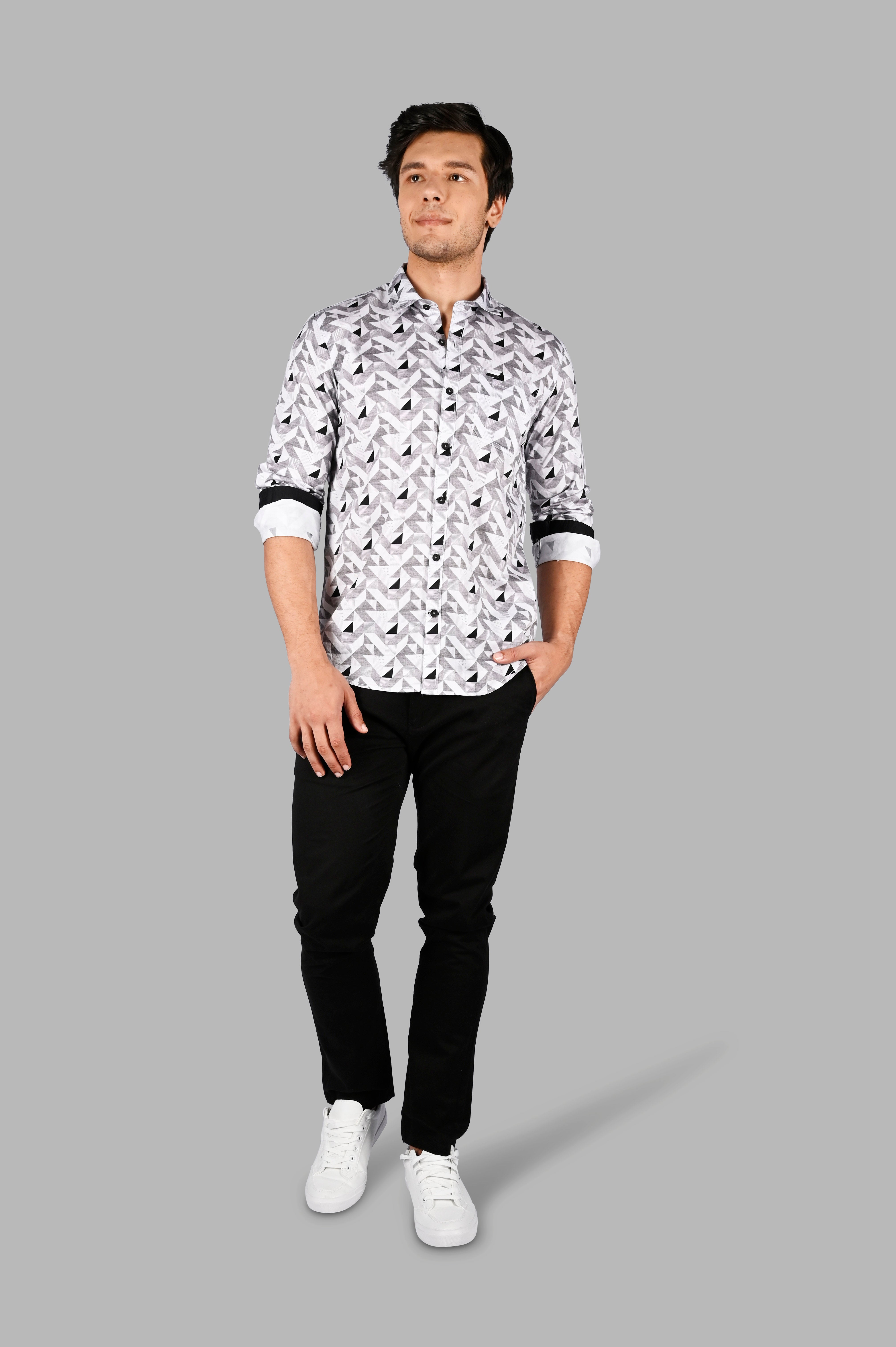 Indulge in the luxurious comfort and timeless style of the Tim Paris Men's Cotton geometric print Slim Fit Shirt. Crafted with high-quality cotton, this versatile shirt offers a soft touch against your skin throughout the day. Its classic geometric print adds a touch of sophistication, while the slim fit silhouette ensures a modern and tailored look. Perfect for any occasion, this shirt effortlessly adapts to your style needs.