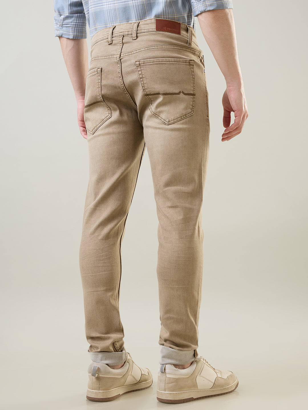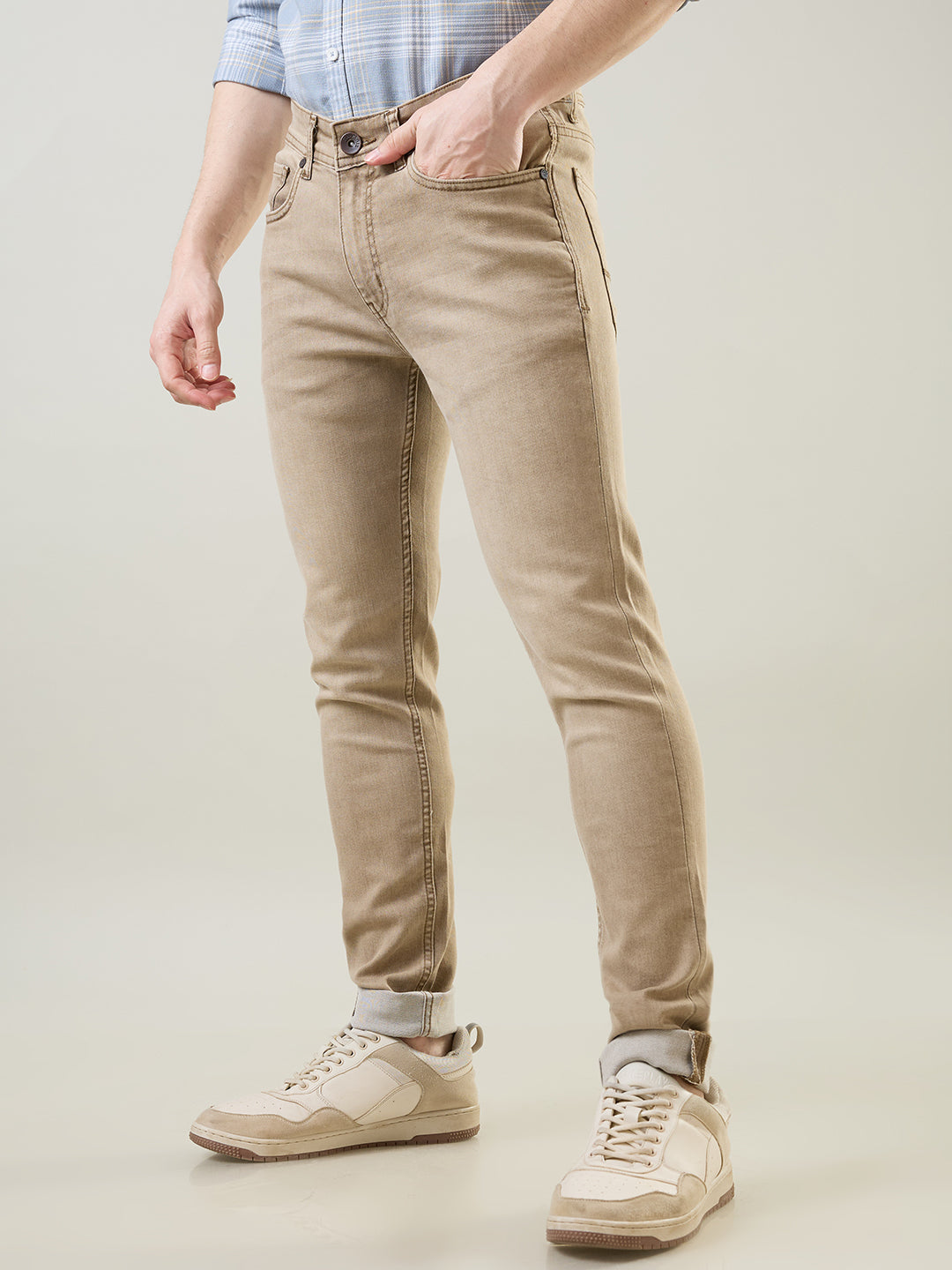 Tim Paris Mens Camel Solid Jeans In Cotton Blend With A Hugo Skinny Fit. This Jeans Blends Comfort With Style Effortlessly.