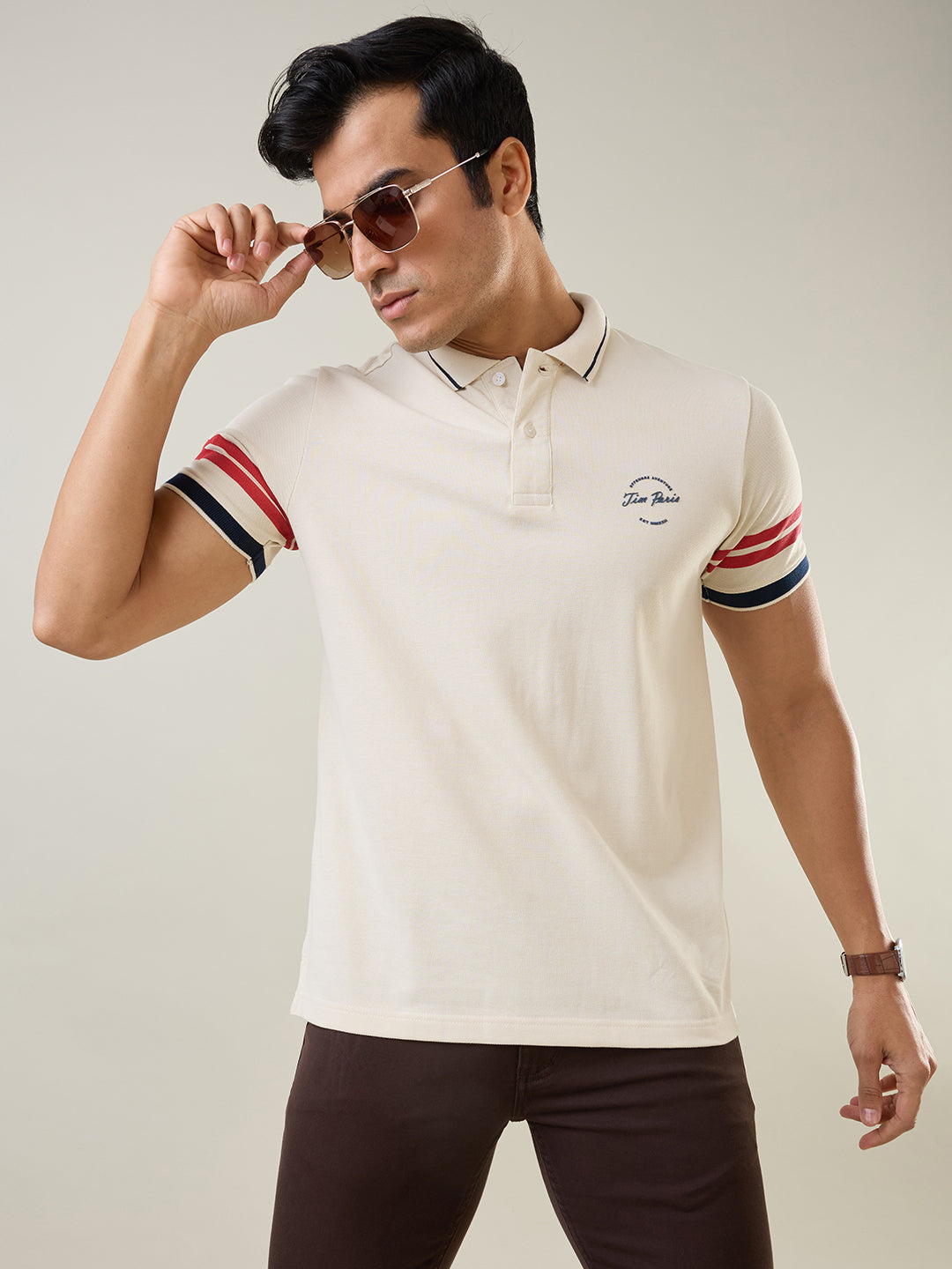 Tim Paris Mens Egret Solid T-Shirt In Cotton Blend With A Regular Fit. This T-Shirt Blends Comfort With Style Effortlessly With The Style Effortlessly