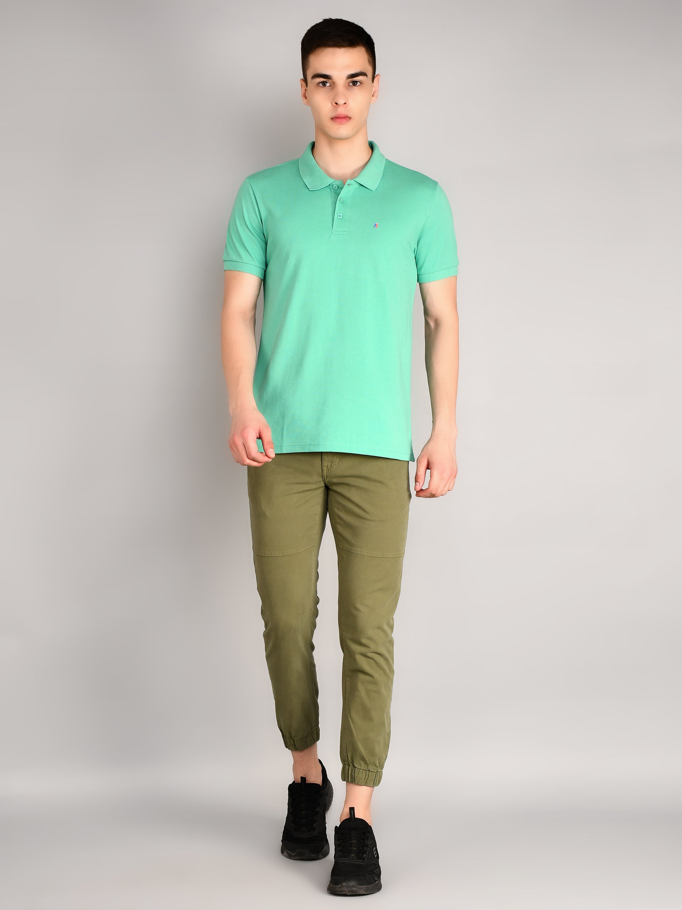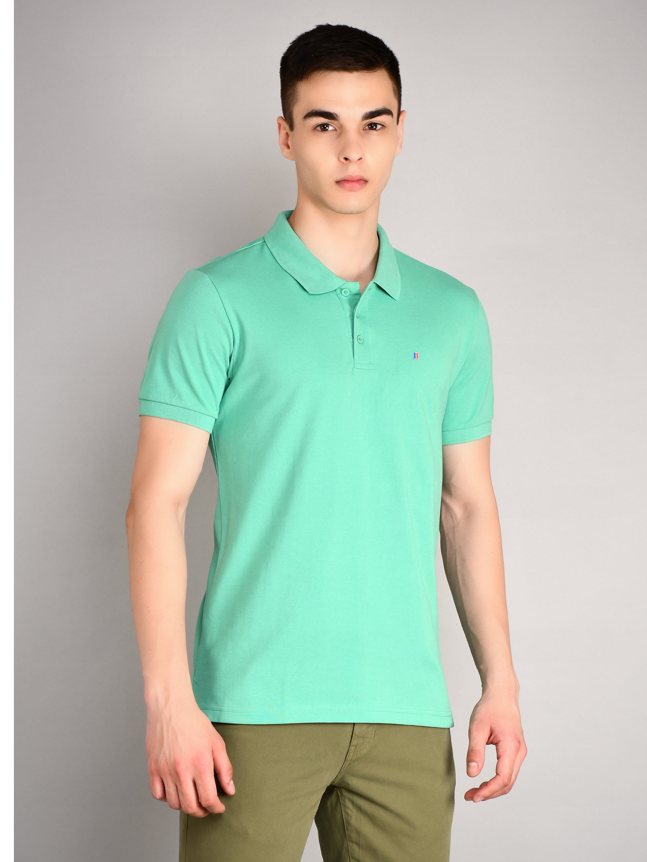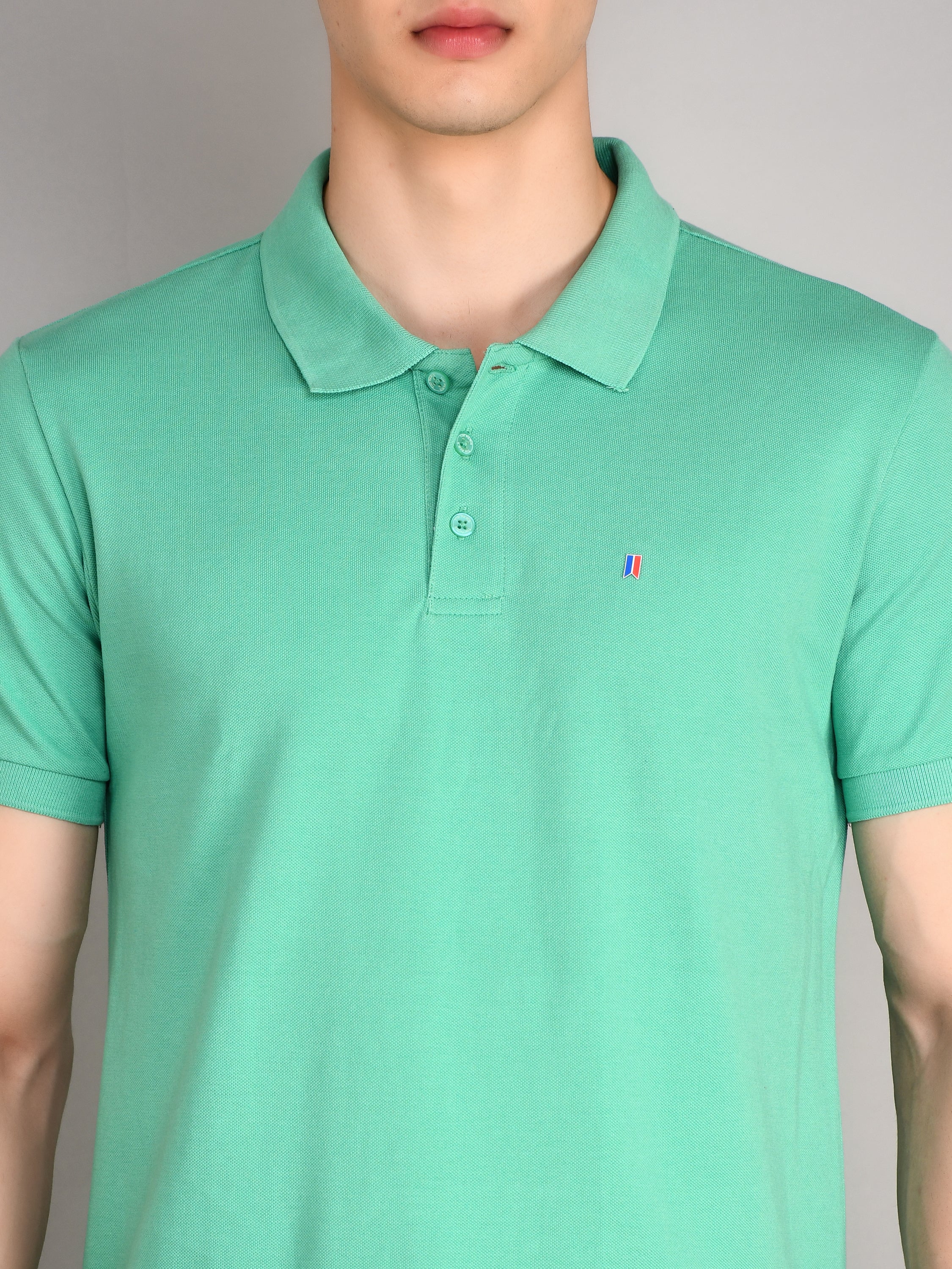 Green Polo Neck Solid T-Shirt