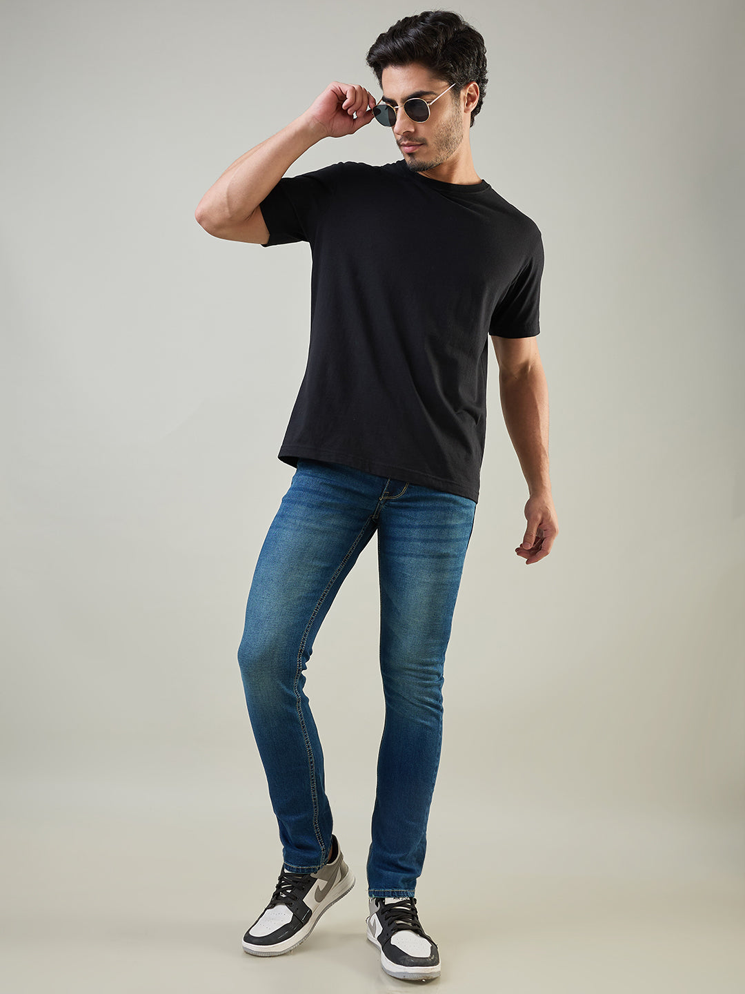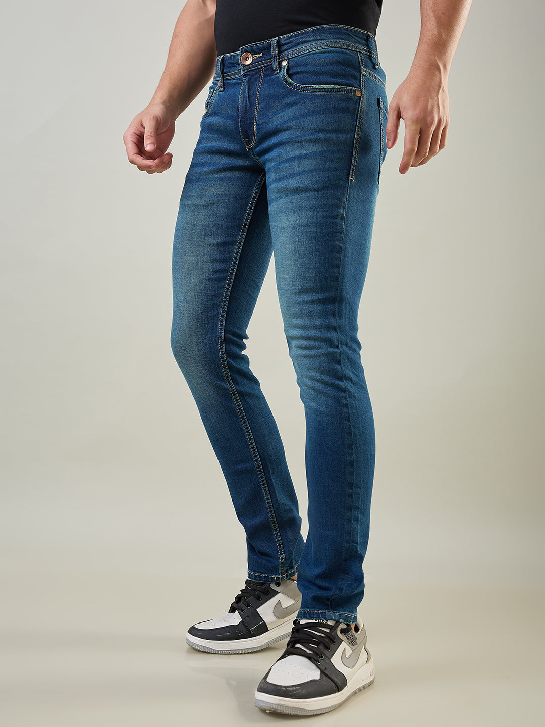 Tim Paris Mens M Tint Indigo Solid Jeans In Cotton Blend With A Hugo Skinny Fit. This Jeans Blends Comfort With Style Effortlessly.