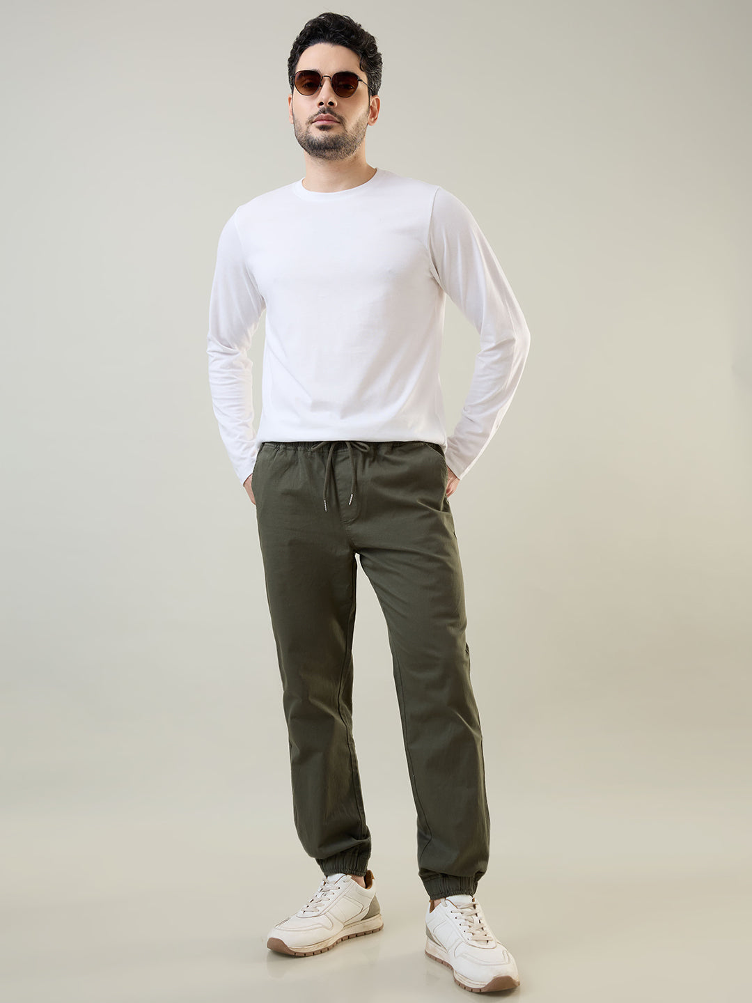 Tim Paris Mens Olive Green Regular Jogger In Cotton Blend With A Regular Fit. This Jogger Blends Comfort With Style Effortlessly With The Style Effortlessly