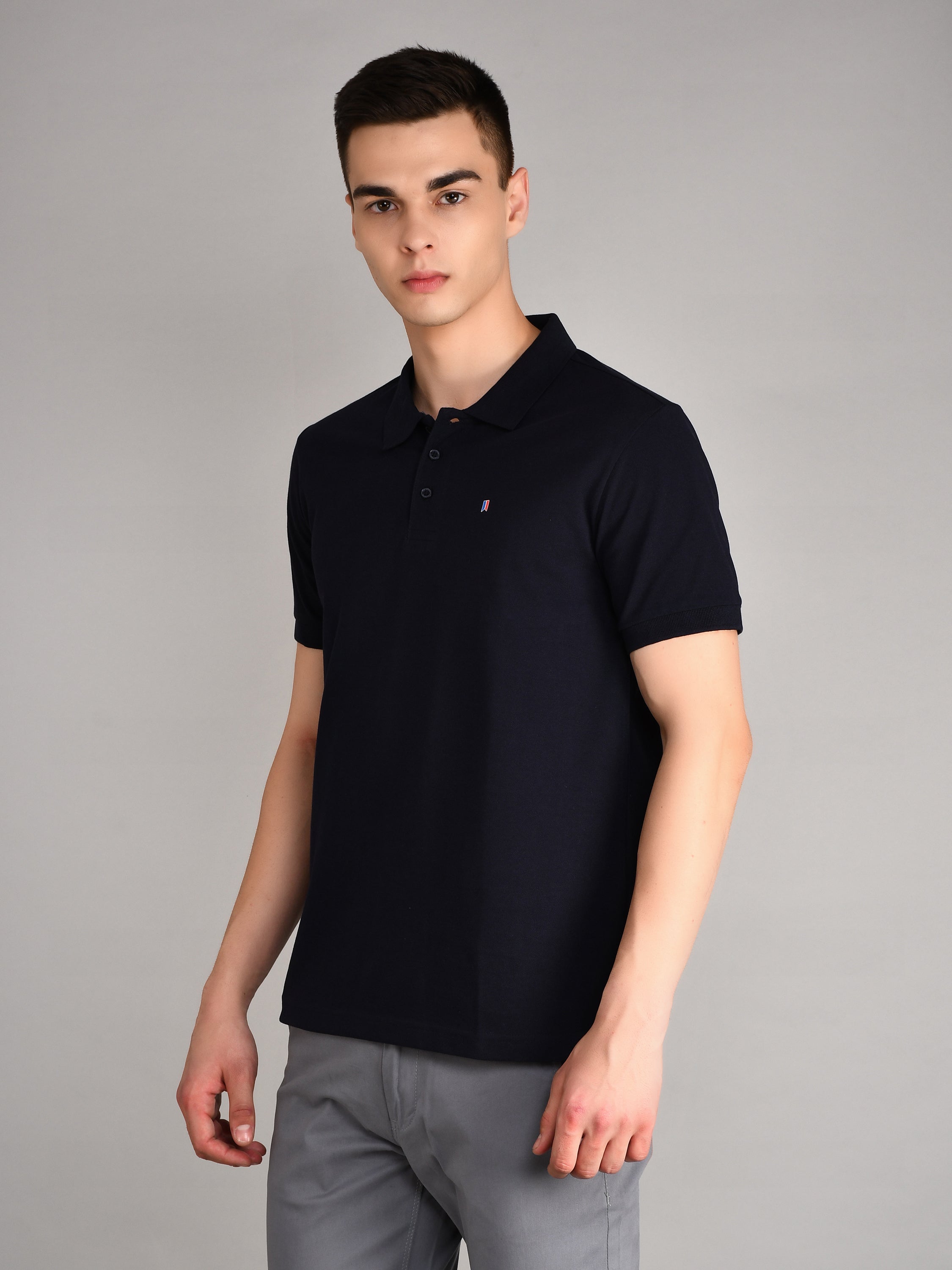 Tim Paris Mens Navy Solid Polo Neck In Cotton Blend With A Regular. This Polo Neck Blends Comfort With Style Effortlessly.