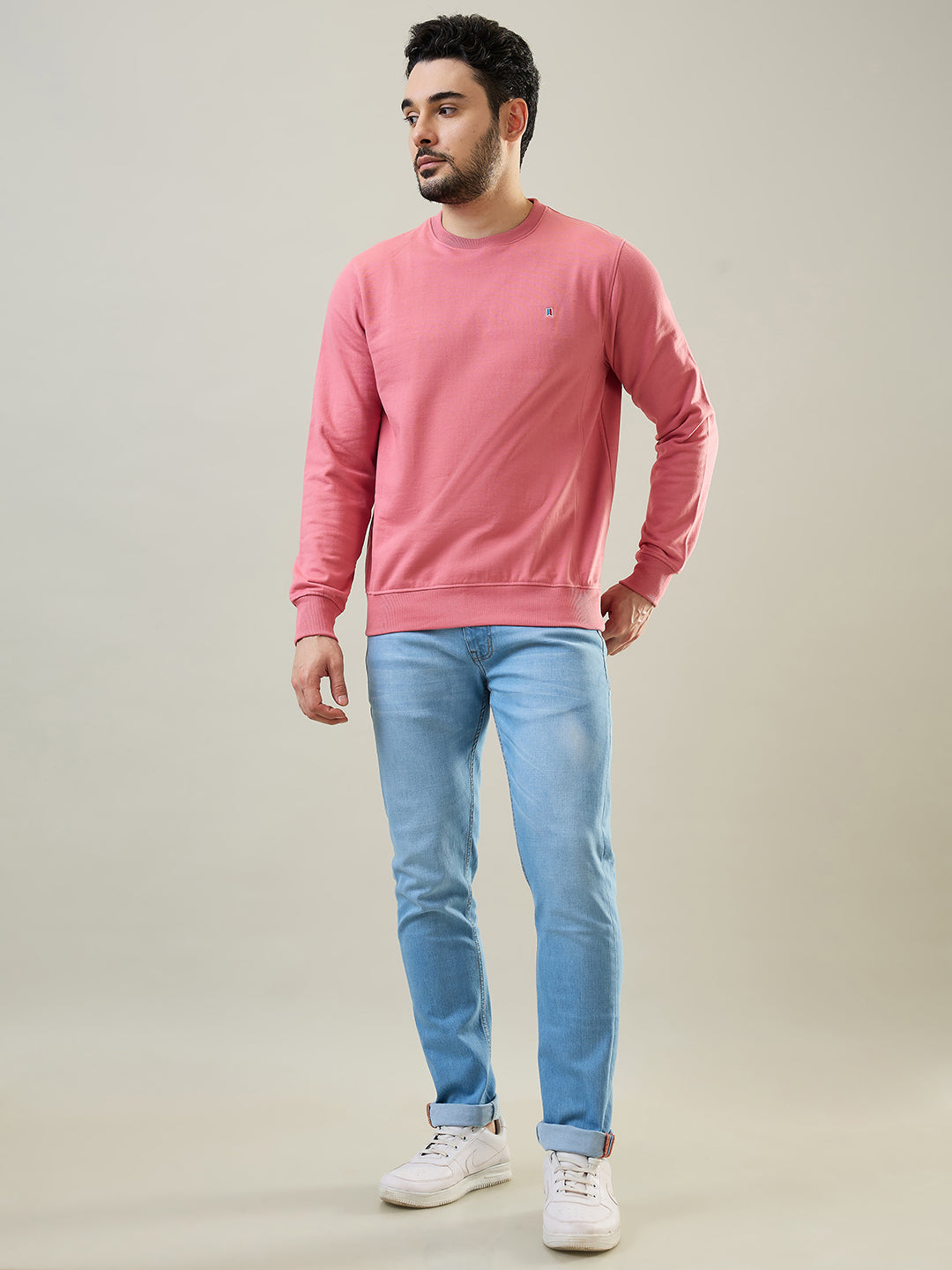 Tim Paris Mens Pink Solid Sweatshirt In Cotton Blend With A Regular Fit .This Sweatshirt Blends Comfort With Style Effortlessly.