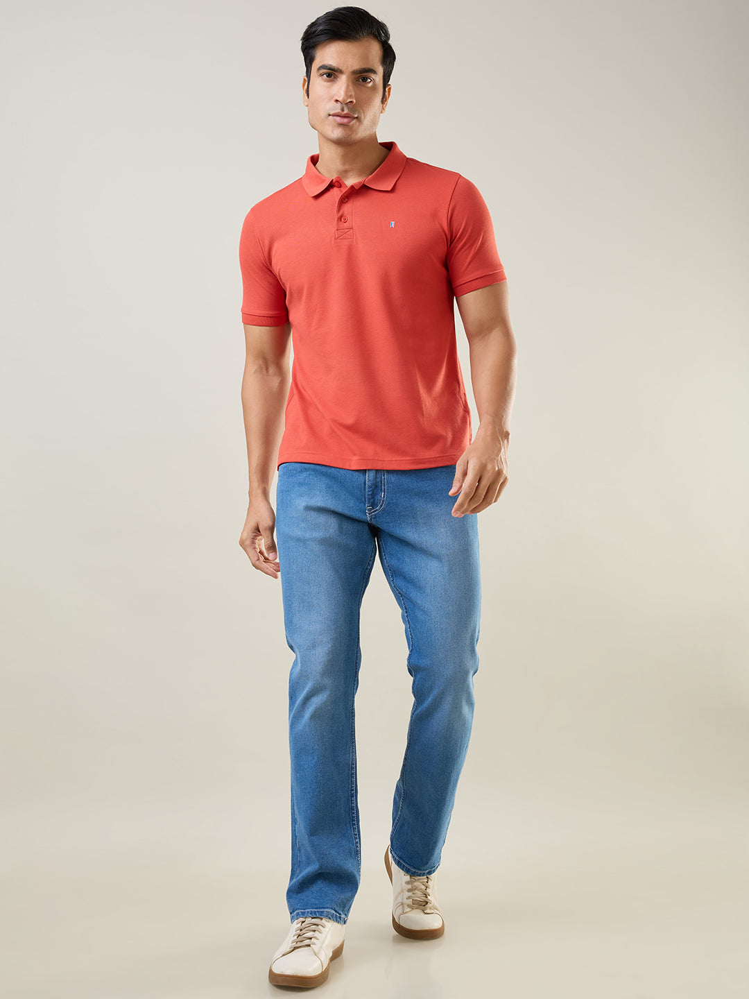 Tim Paris Mens Rust Solid Polo T-Shirt In Cotton Blend With A Regular Fit. This Polo T-Shirt Blends Comfort With Style Effortlessly With The Style Effortlessly