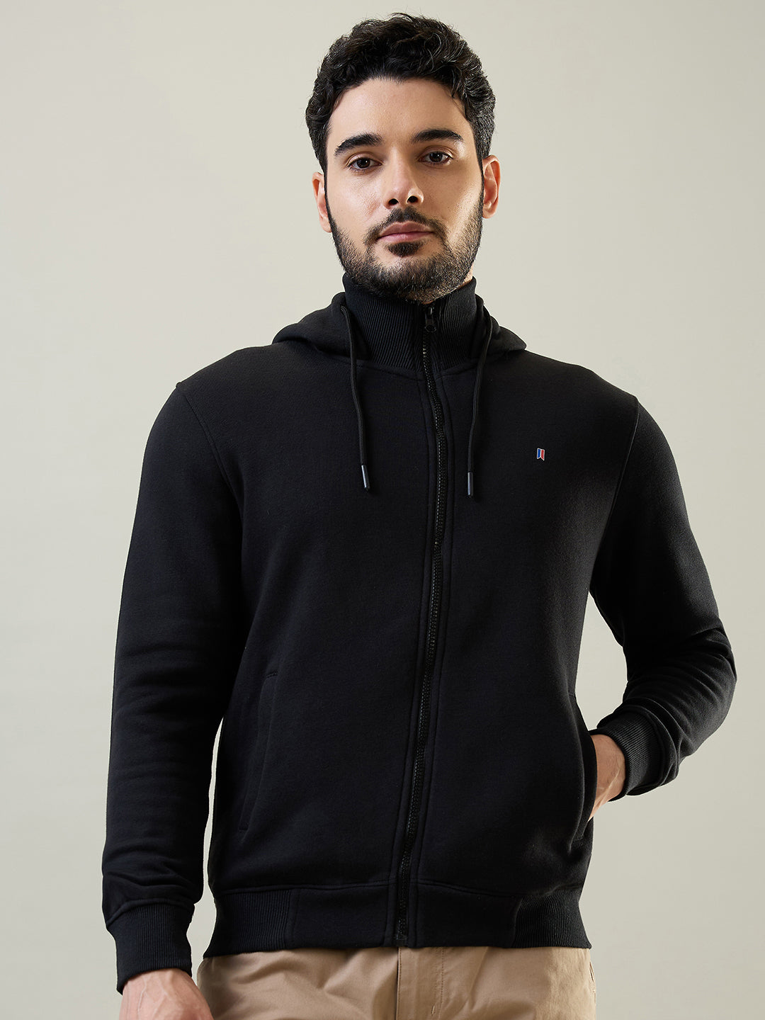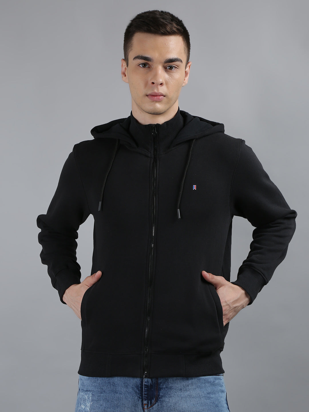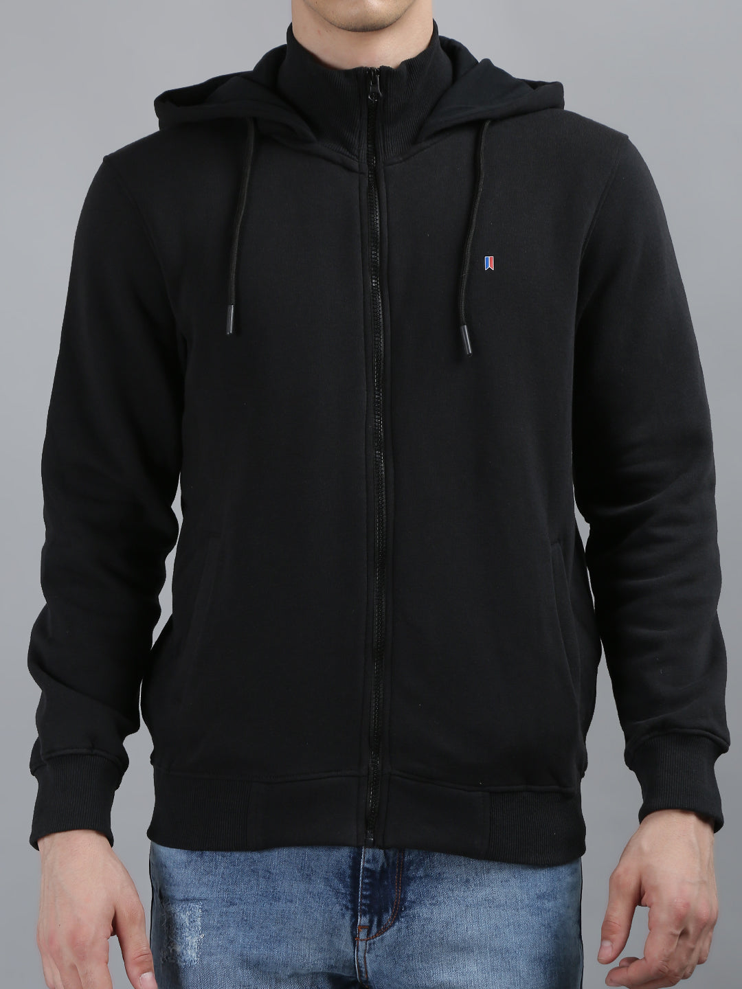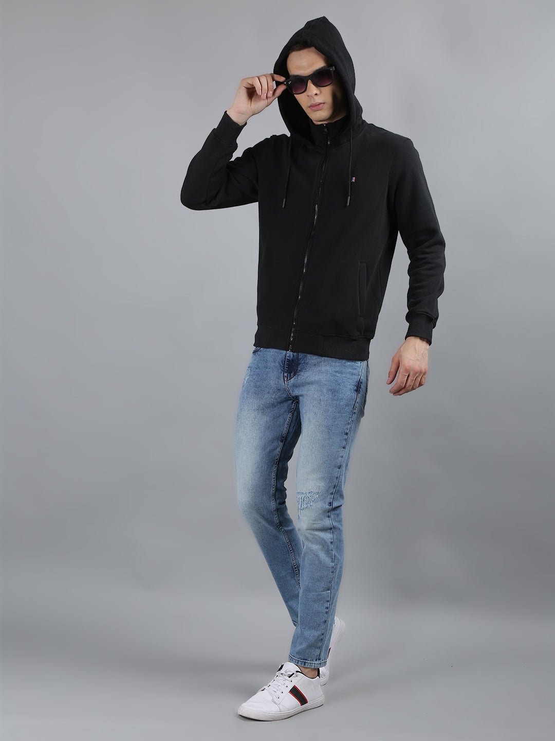 Featuring a practical zipper and a clean, solid black color, this hoodie effortlessly complements any outfit. The full sleeves and attached hood offer extra warmth and protection, making it a perfect choice for cooler weather or for layering over your favorite tees.