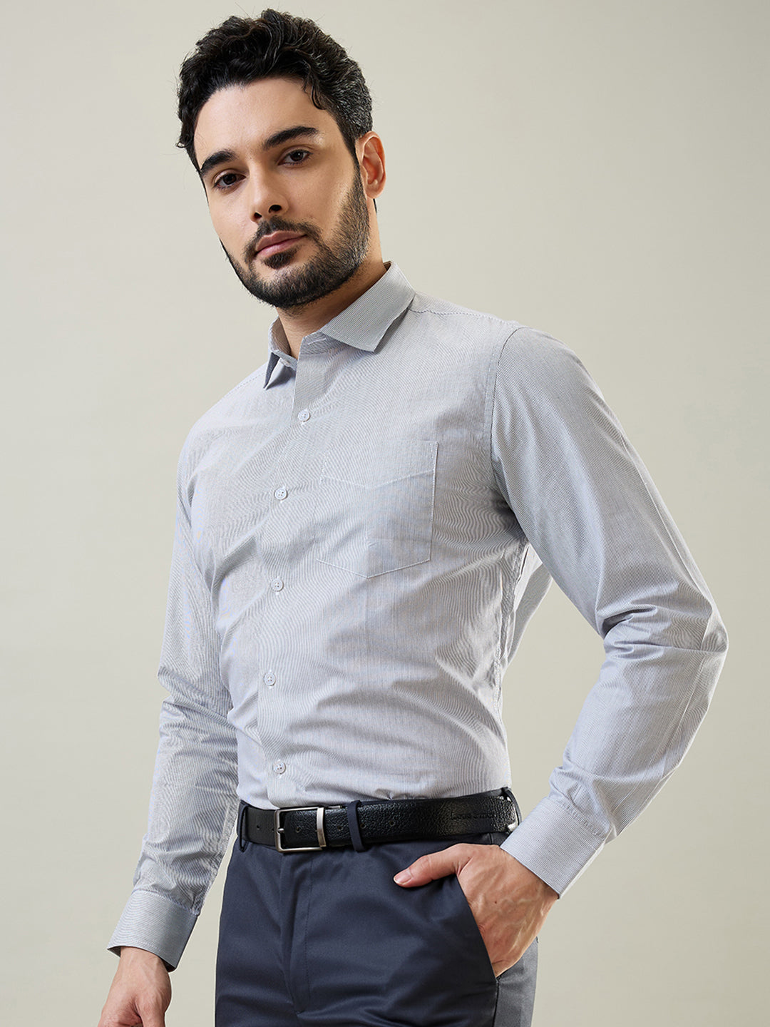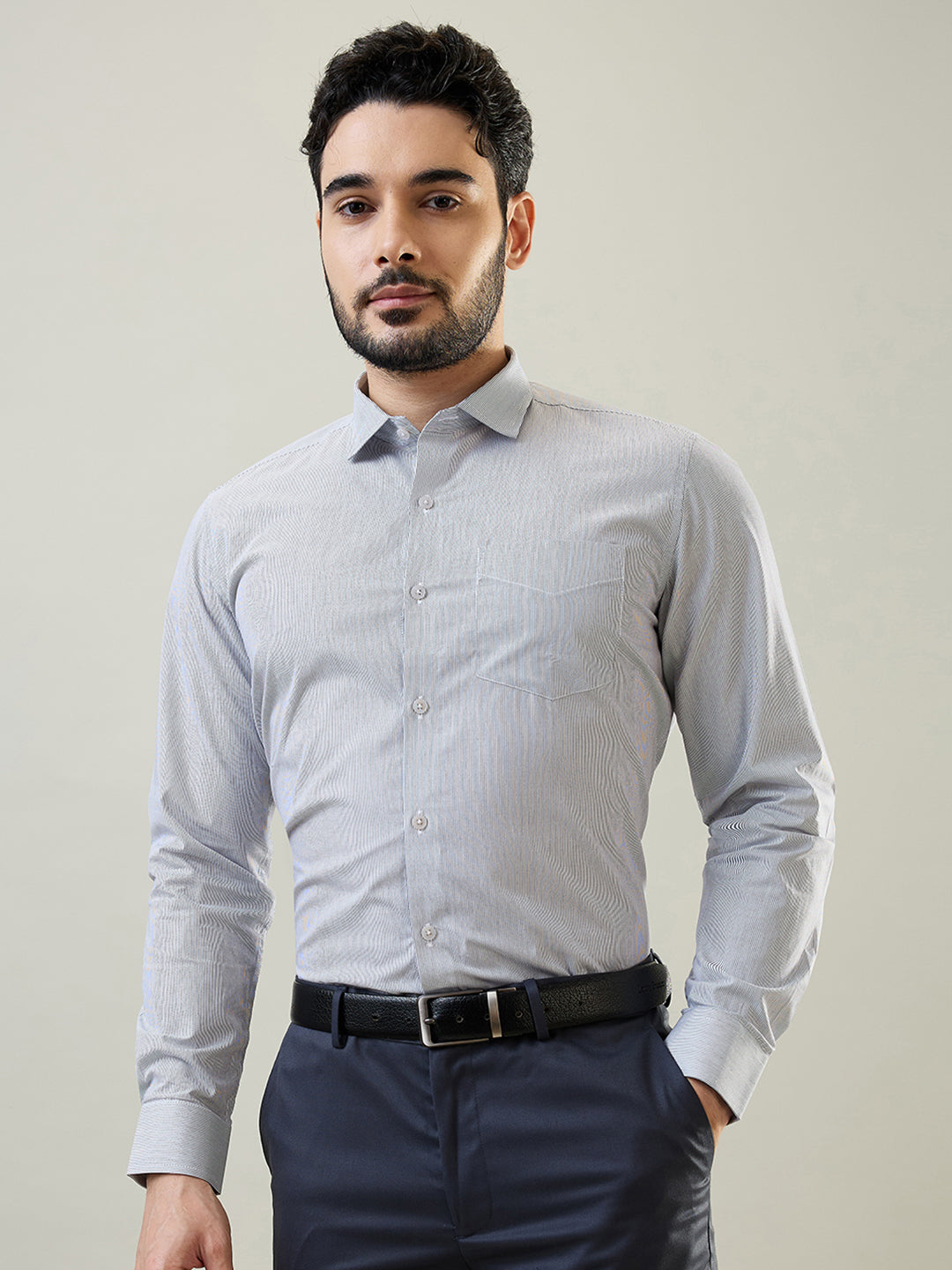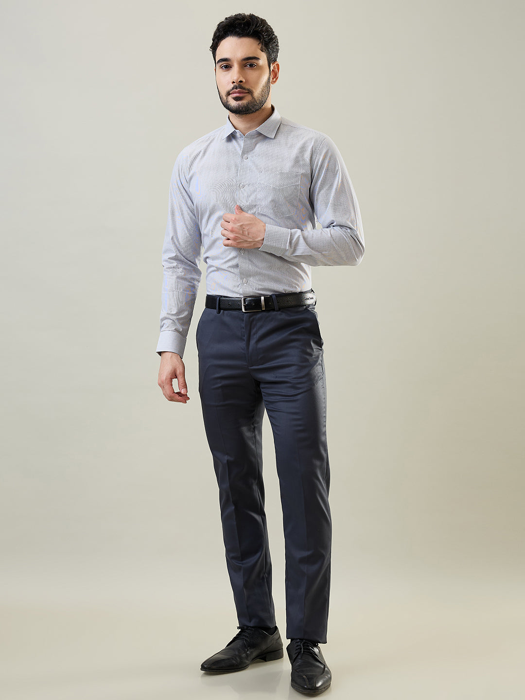 With its full sleeve and regular fit design, this shirt offers a tailored look while ensuring comfort throughout the day. Whether paired with formal trousers, chinos, or a suit, this shirt is versatile enough to suit any occasion, from business meetings to evening events.
