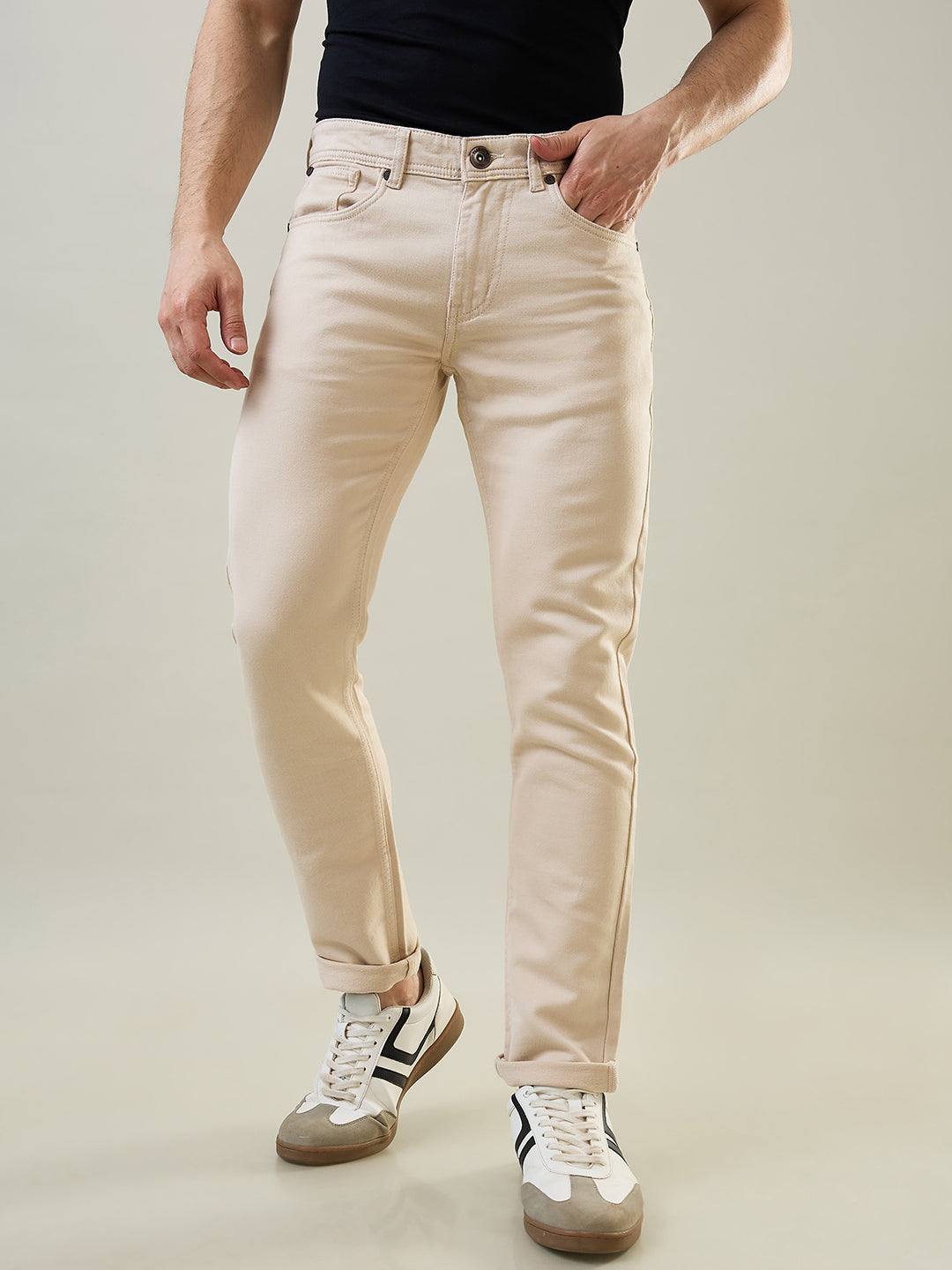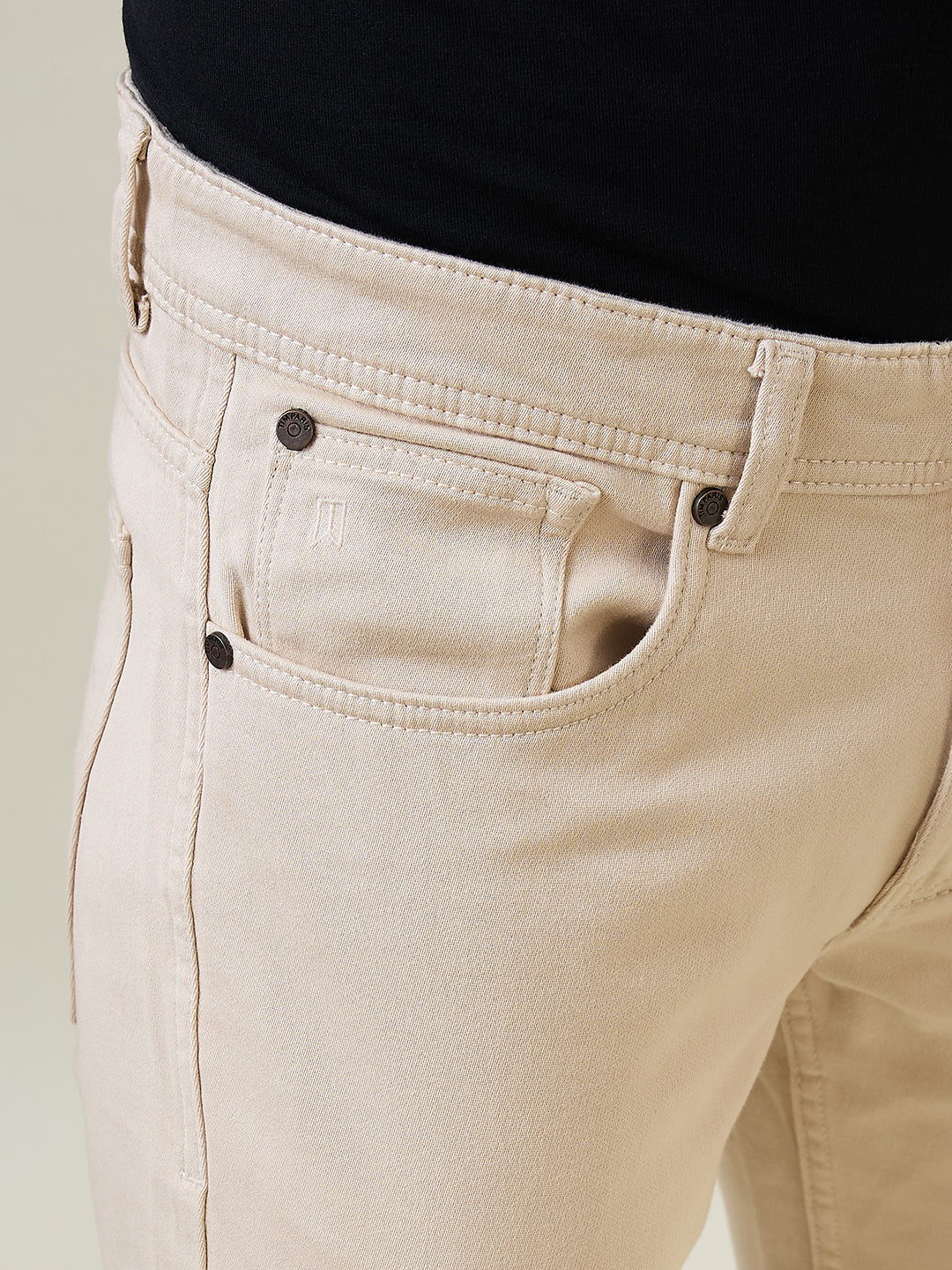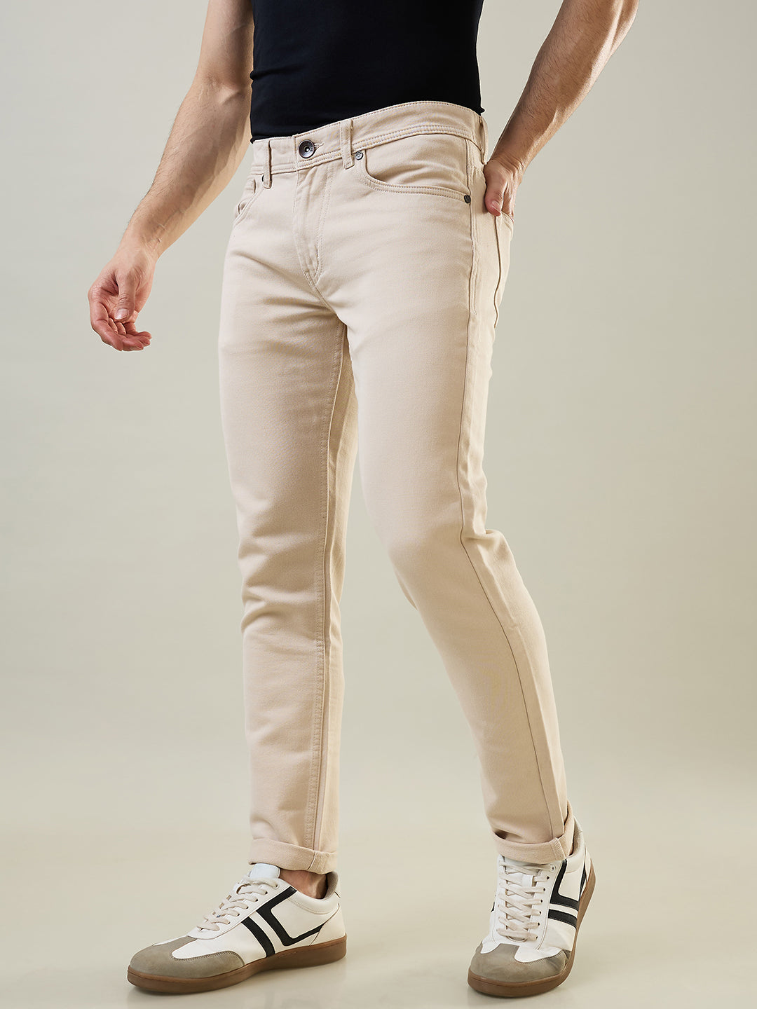 Refresh your wardrobe with the Tim Paris Cream Reactive Jeans. These jeans are crafted from a blend of 98% cotton and 2% stretch, providing a sleek and comfortable fit. The slim tapered design enhances your silhouette, making them the perfect choice for modern, stylish looks.