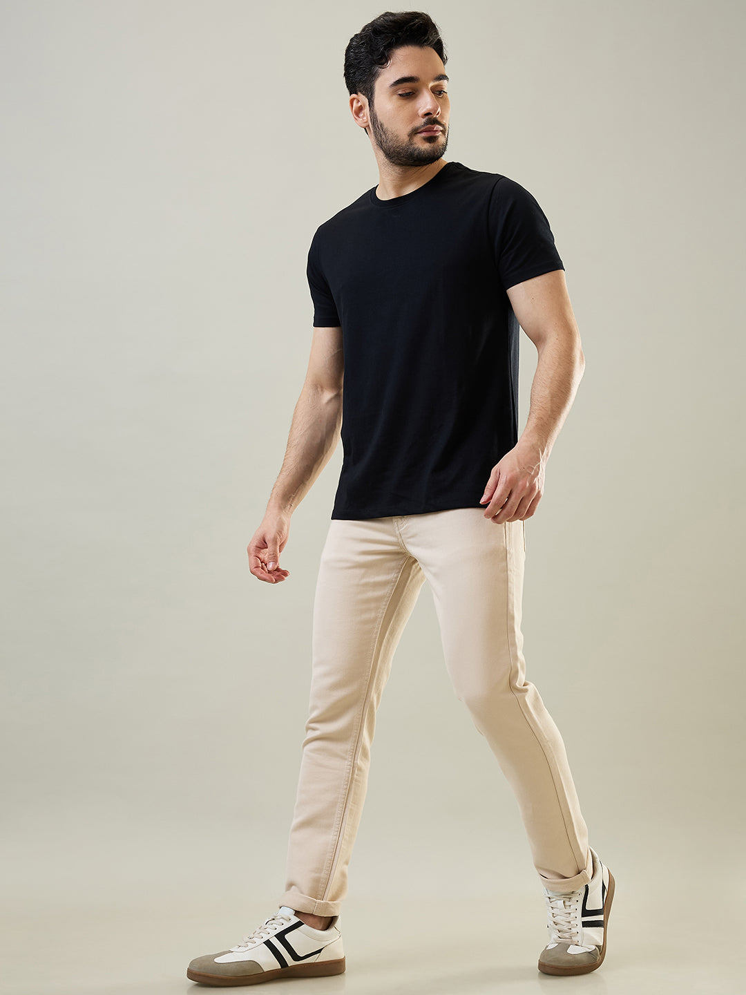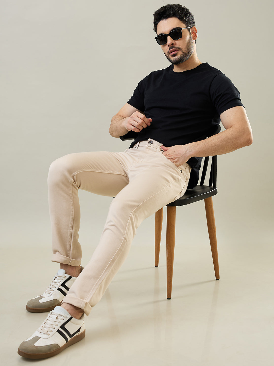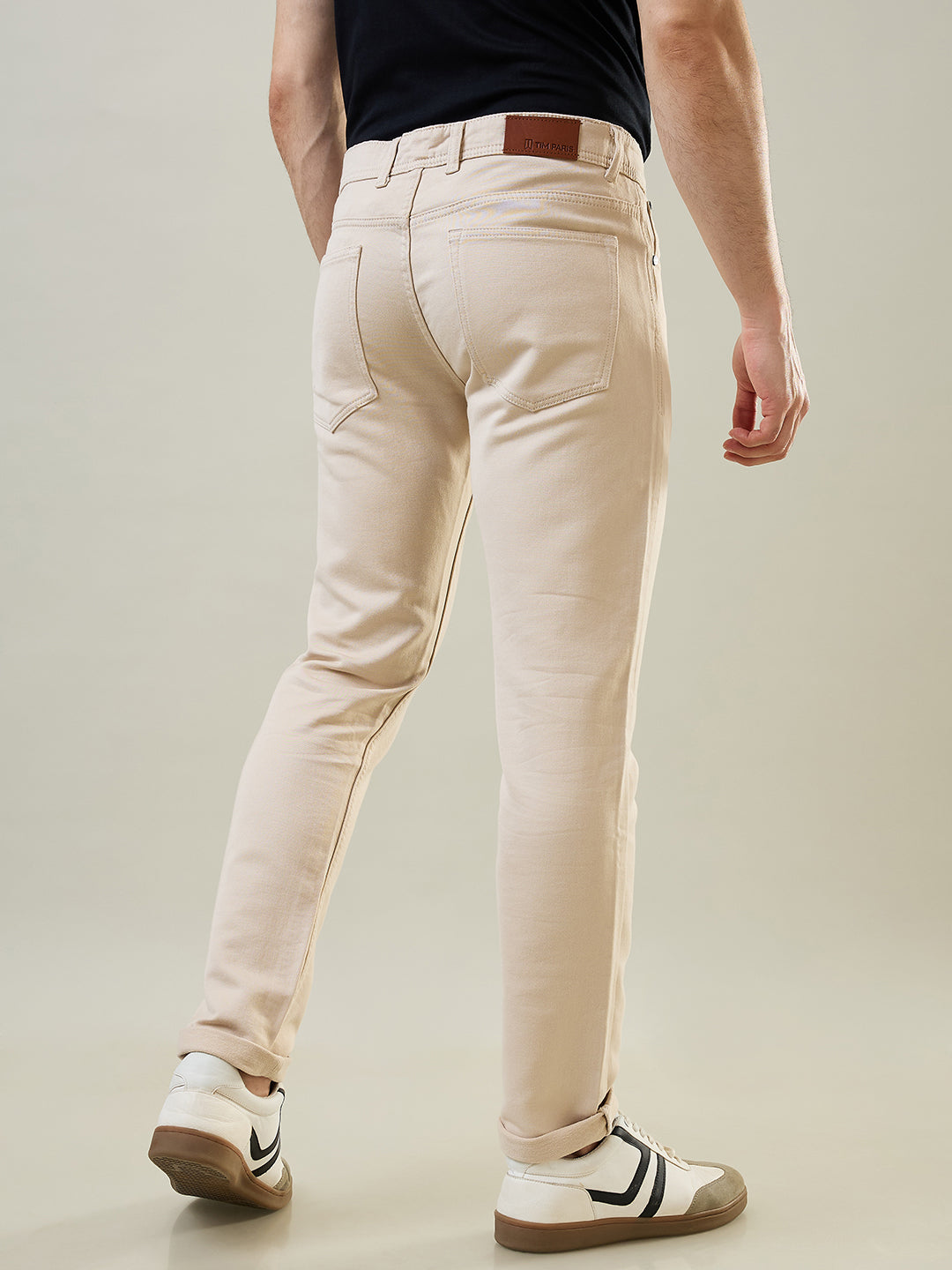 Refresh your wardrobe with the Tim Paris Cream Reactive Jeans. These jeans are crafted from a blend of 98% cotton and 2% stretch, providing a sleek and comfortable fit. The slim tapered design enhances your silhouette, making them the perfect choice for modern, stylish looks.