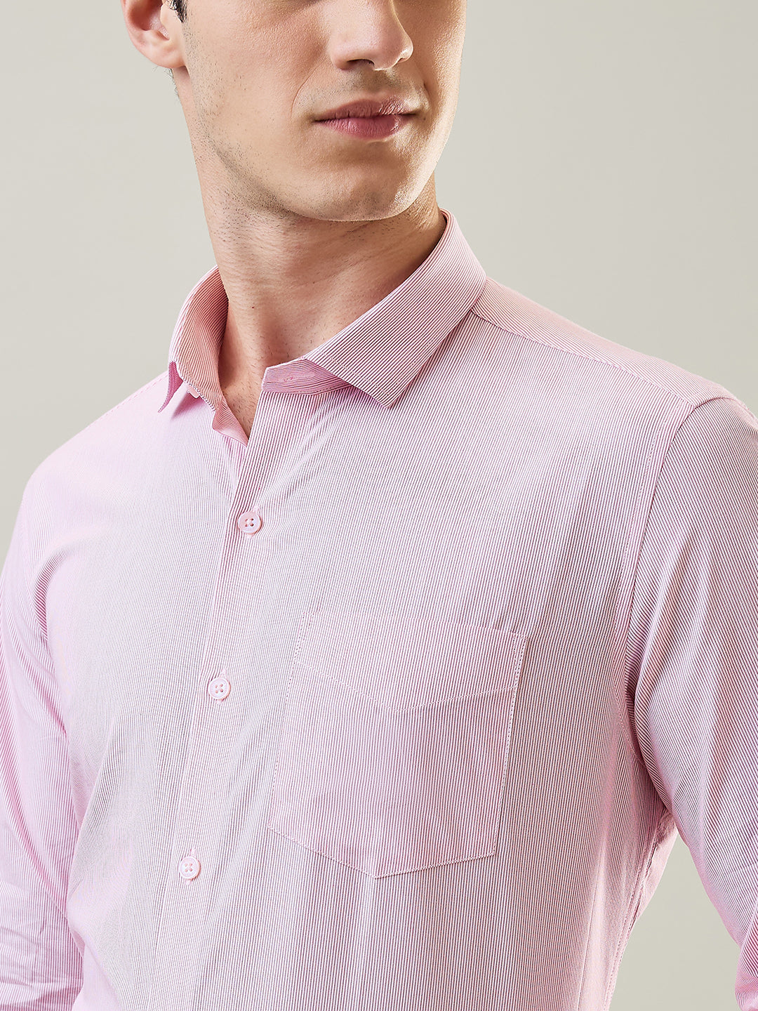 With its full sleeves and regular collar, this formal shirt offers a clean, structured look that pairs beautifully with trousers, chinos, or even jeans for a smart-casual vibe. The cotton fabric ensures all-day comfort, while the timeless stripe pattern adds a touch of personality to your formal wardrobe.