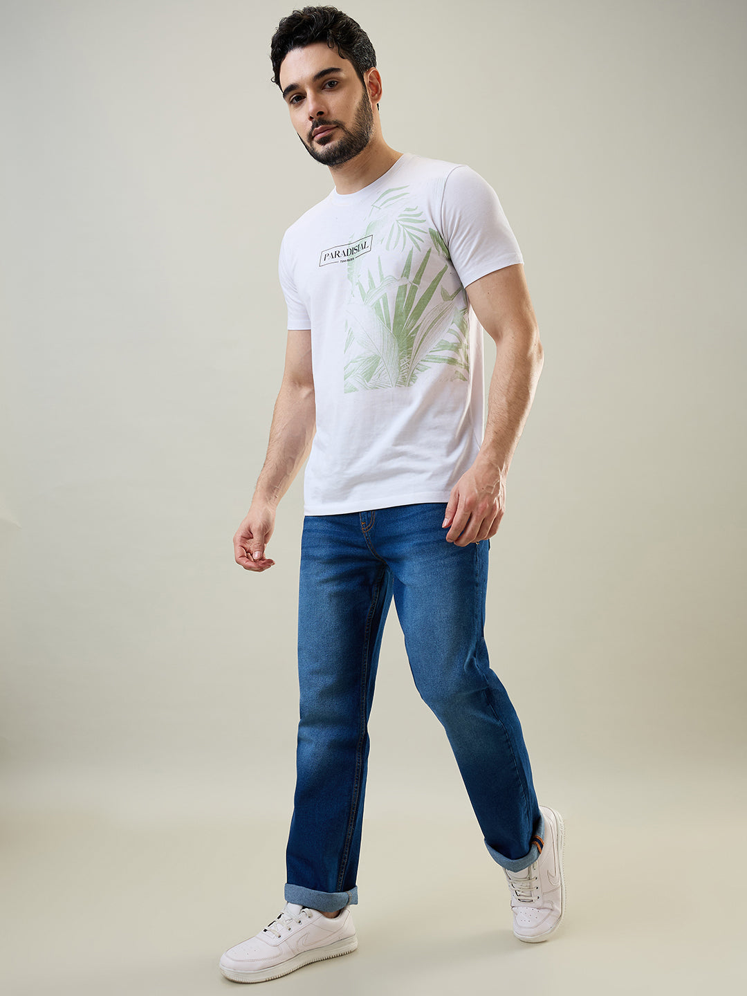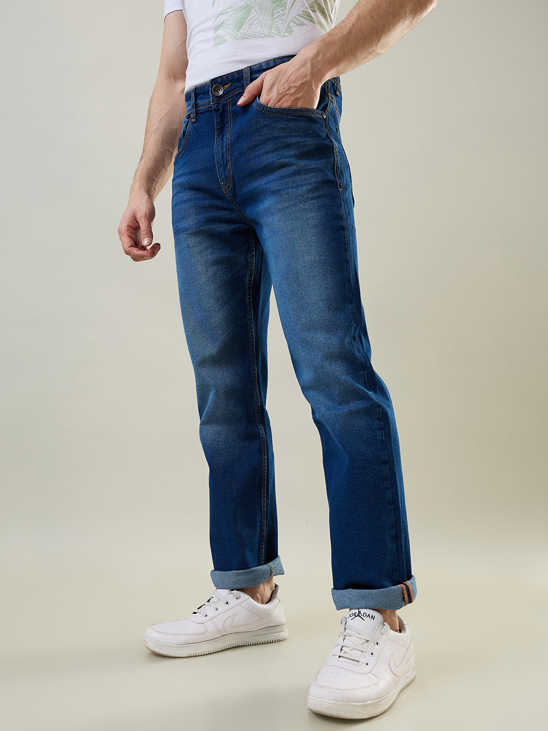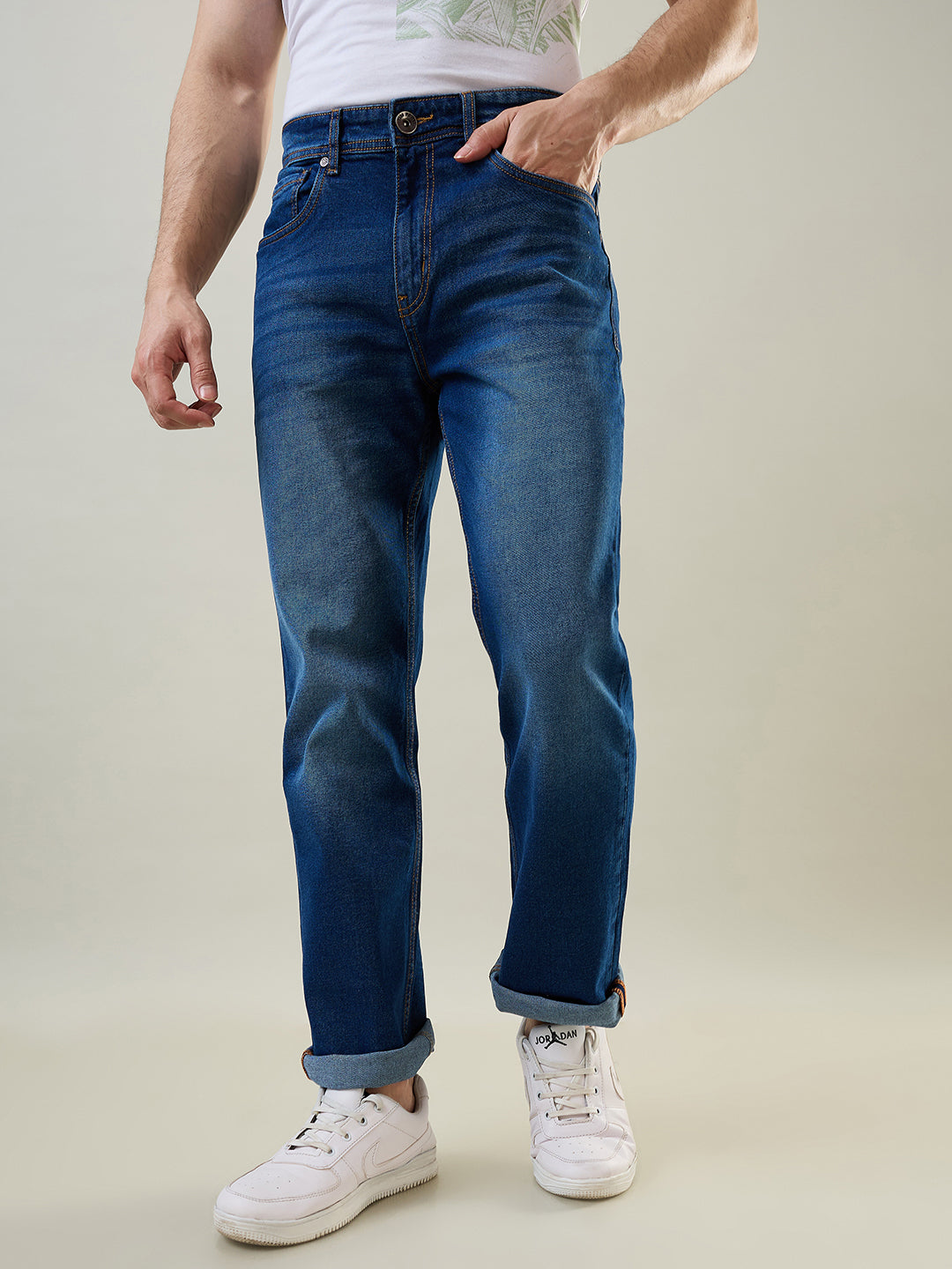 With a straight fit, these jeans offer a slightly looser feel around the thighs, while maintaining a clean, tailored look down to the ankles. Whether you’re dressing up for a smart-casual outing or keeping it laid-back, the Tim Paris Medium Indigo Denim provides the perfect foundation for any wardrobe.