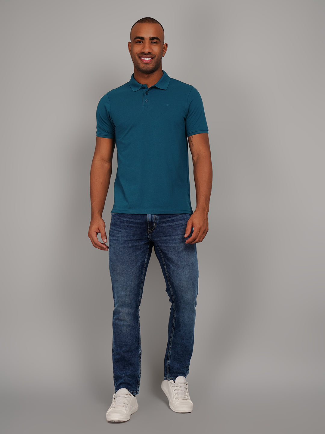 Bring a refreshing vibe to your wardrobe with the Tim Paris Men's Teal Blue Polo Neck Solid T-Shirt. Crafted from a comfortable 60% cotton and 40% polyester blend, this t-shirt offers a perfect balance of softness, durability, and breathability. The vibrant teal blue color makes this polo a standout piece, while the classic polo neck adds a sophisticated yet relaxed look to your style. Whether you’re lounging with friends or stepping out for a casual day, this tee ensures comfort and style in equal measure.