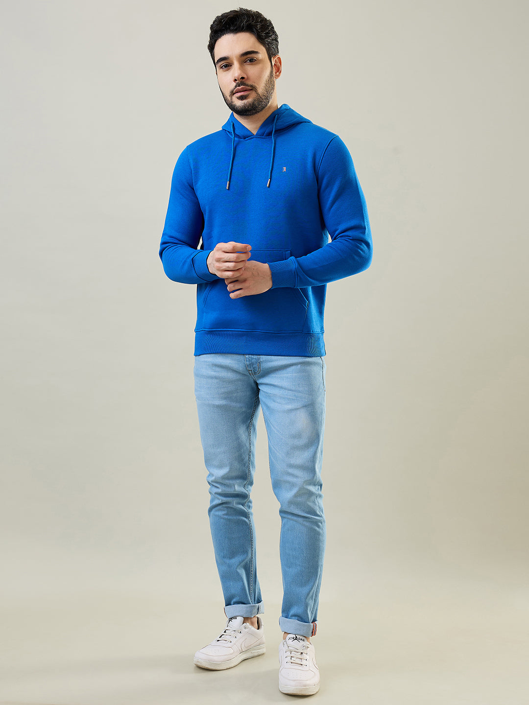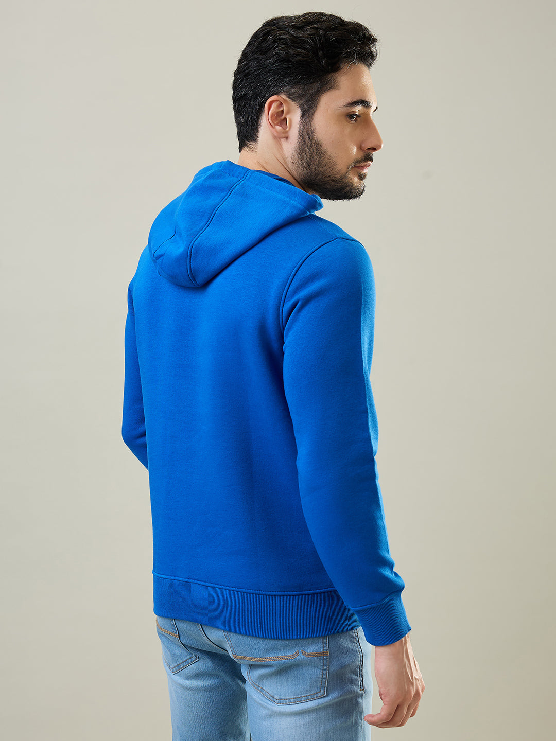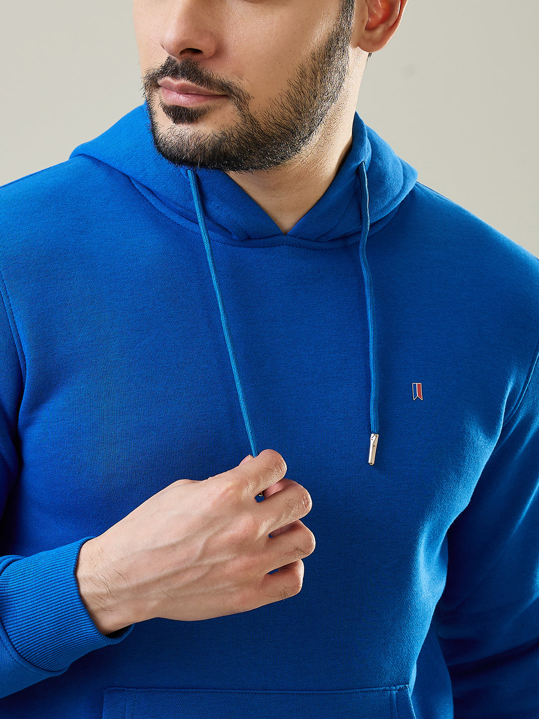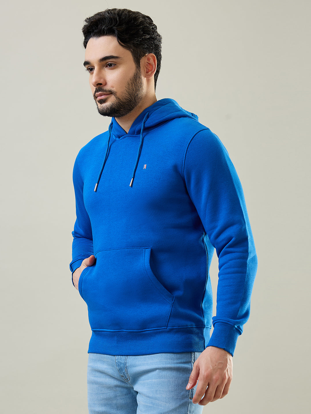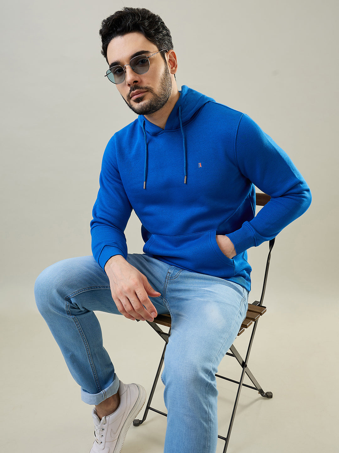 The clean, zipless design enhances the minimalist aesthetic, while the solid blue color adds a modern and versatile touch. Designed with full sleeves and a classic hood, it provides the warmth and coverage you need, whether you're heading out or relaxing at home.