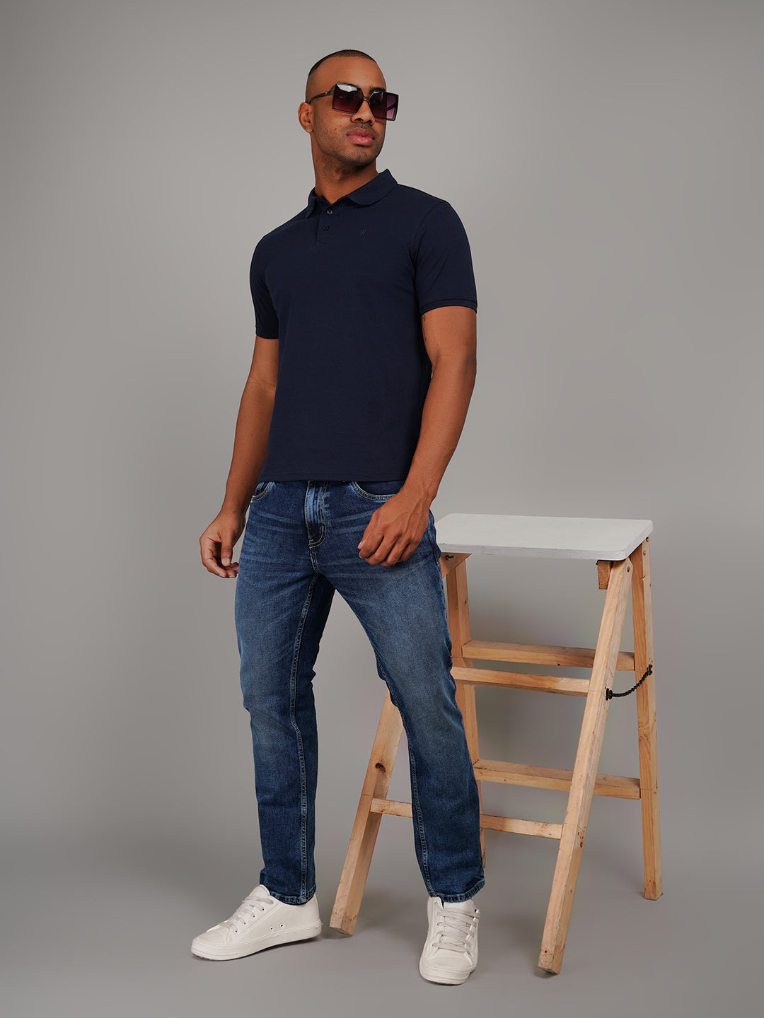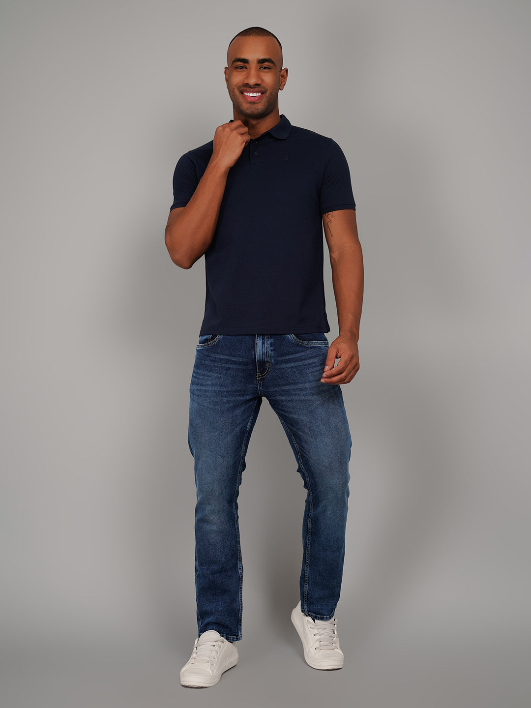 The Tim Paris Dress Blue Polo Neck T-shirt offers the perfect blend of comfort and sophistication. Made from a soft 60% cotton and 40% polyester blend, this t-shirt provides a breathable and durable fit, ideal for all-day wear. The deep dress blue color adds a rich, stylish touch, while the polo neck elevates the look for a refined, smart-casual feel.