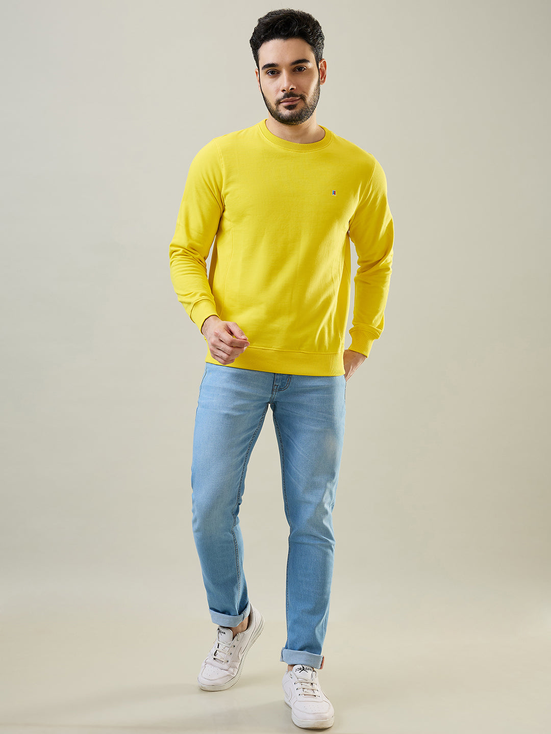 This sweatshirt features a classic round neck and full sleeves for a relaxed, timeless look. The solid yellow color brings a vibrant pop to your outfit, making it a great choice for adding some color to your casual or sporty ensemble. Whether you're lounging at home, going for a casual outing, or hanging out with friends, this sweatshirt will keep you comfortable and stylish.