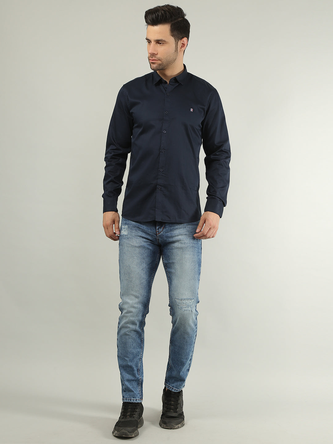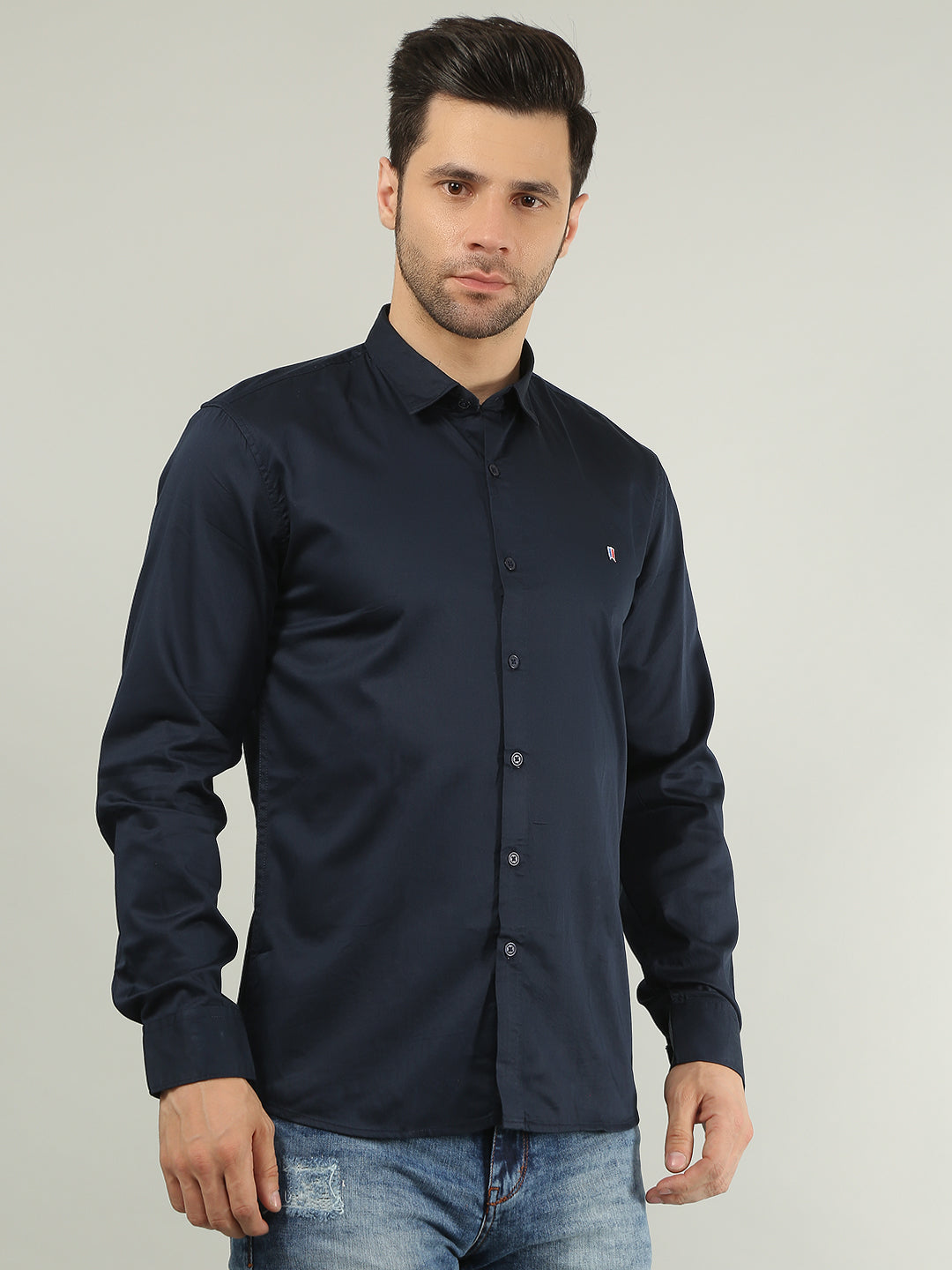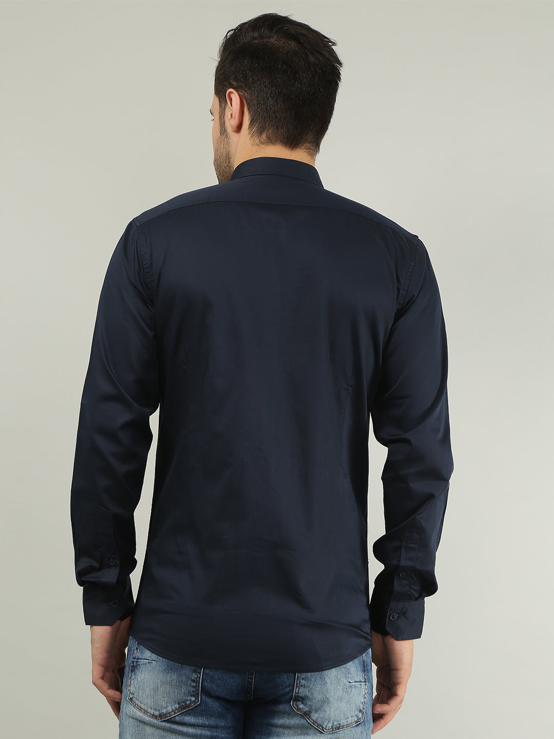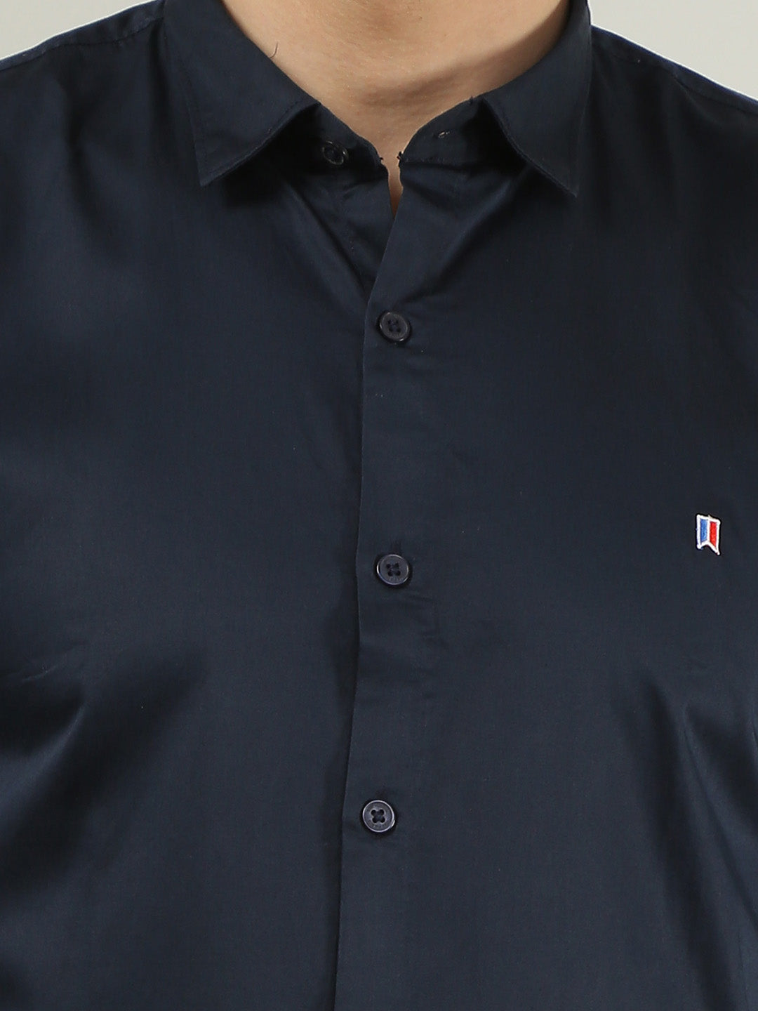 Tim Paris Mens Navy Blue Solid Shirt In Pure Cotton With A Regular Fit. This Shirt Blends Comfort With Style Effortlessly.