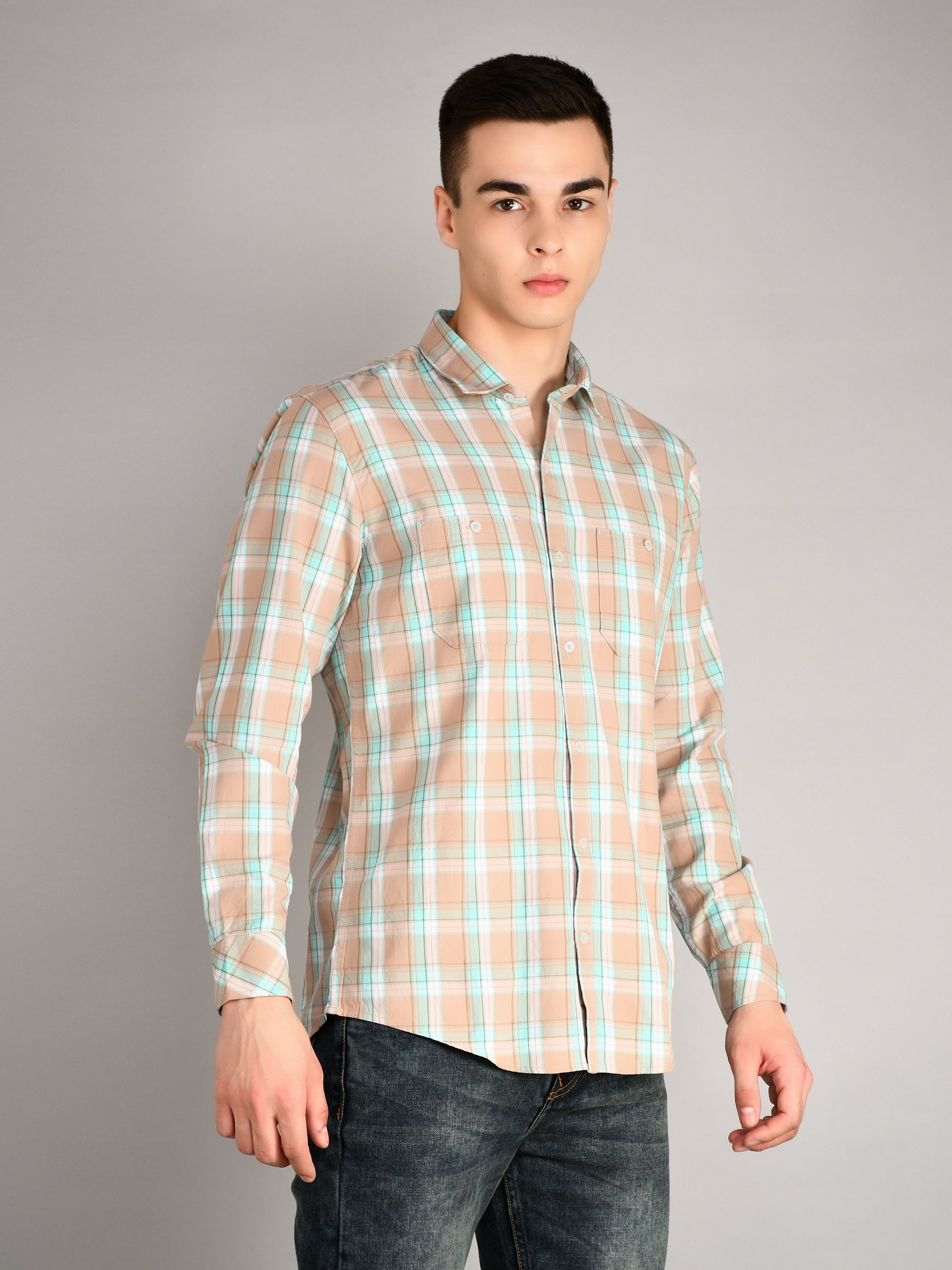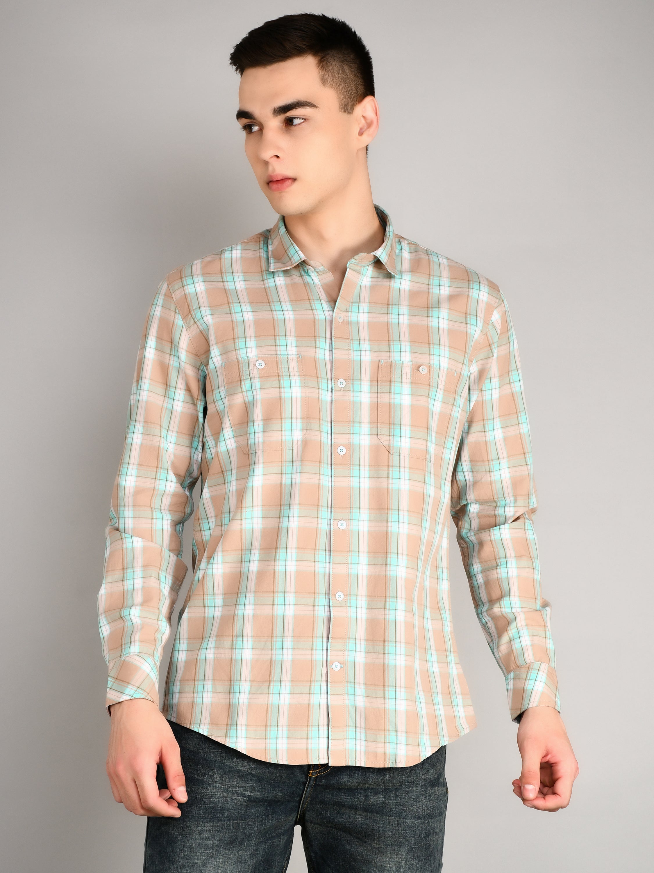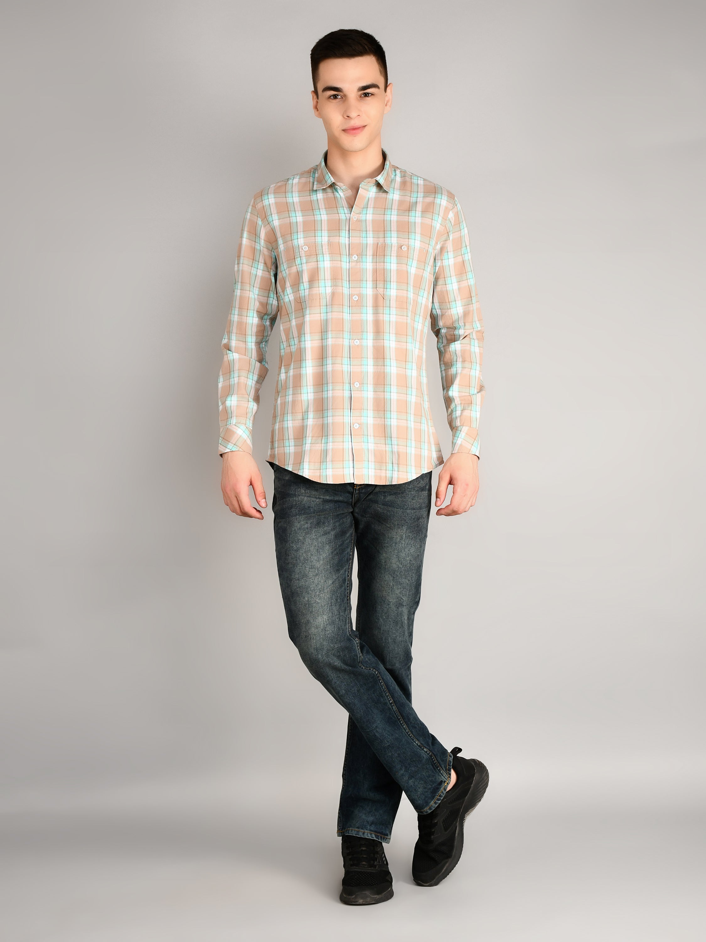 Tim Paris Mens Beige Checkered Shirt In Pure Cotton With A Regular Fit. This Shirt Blends Comfort With Style Effortlessly.