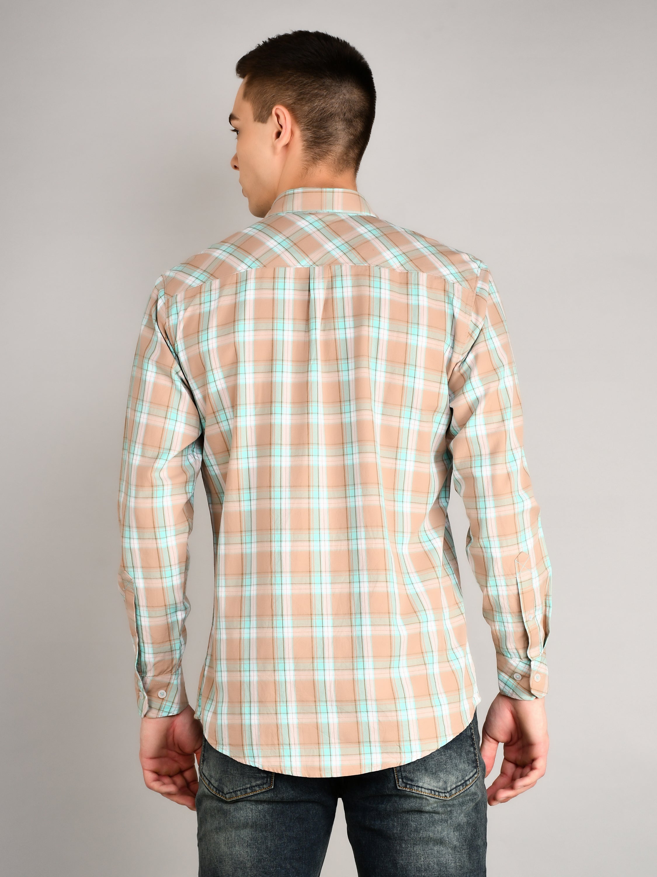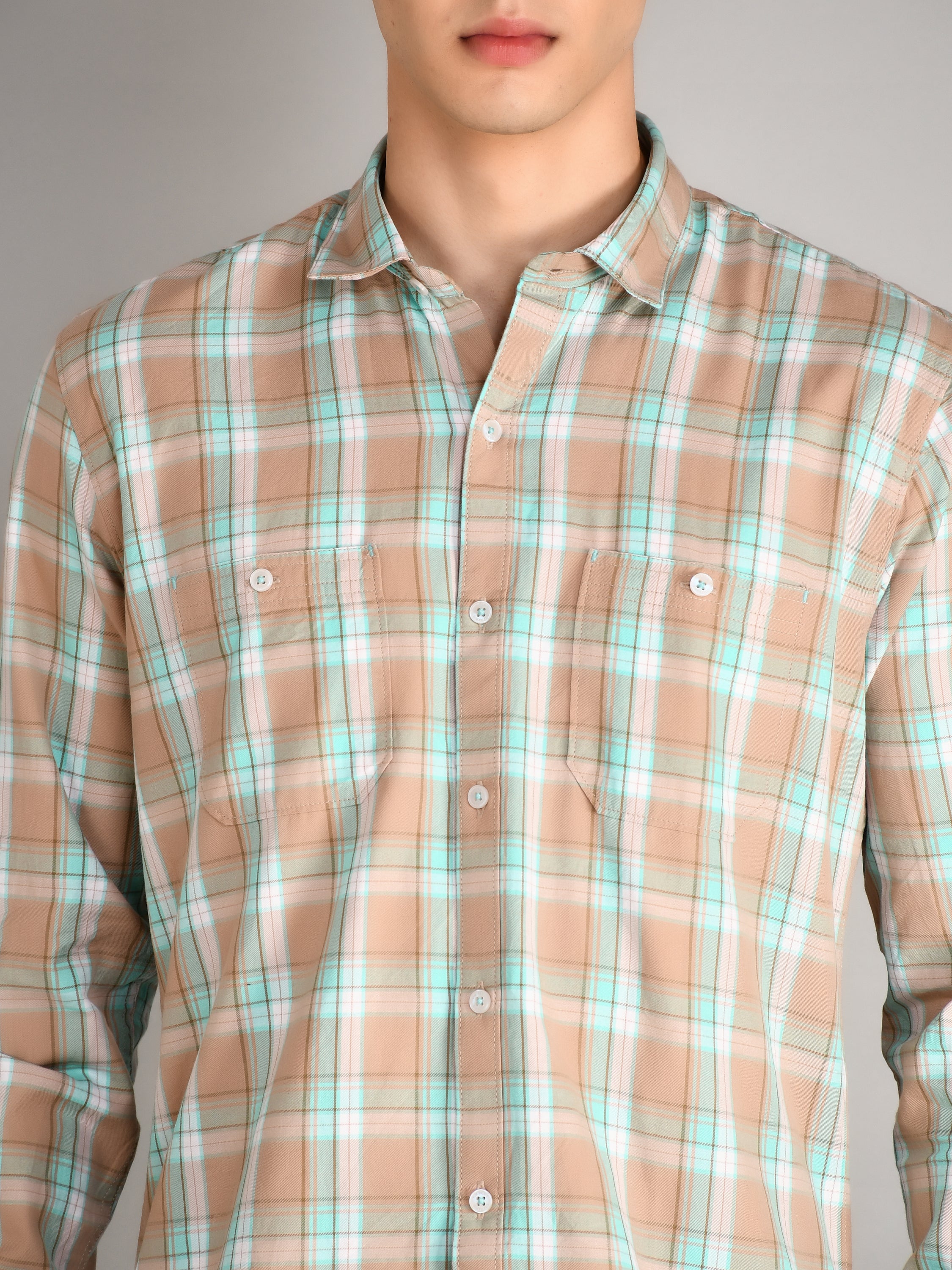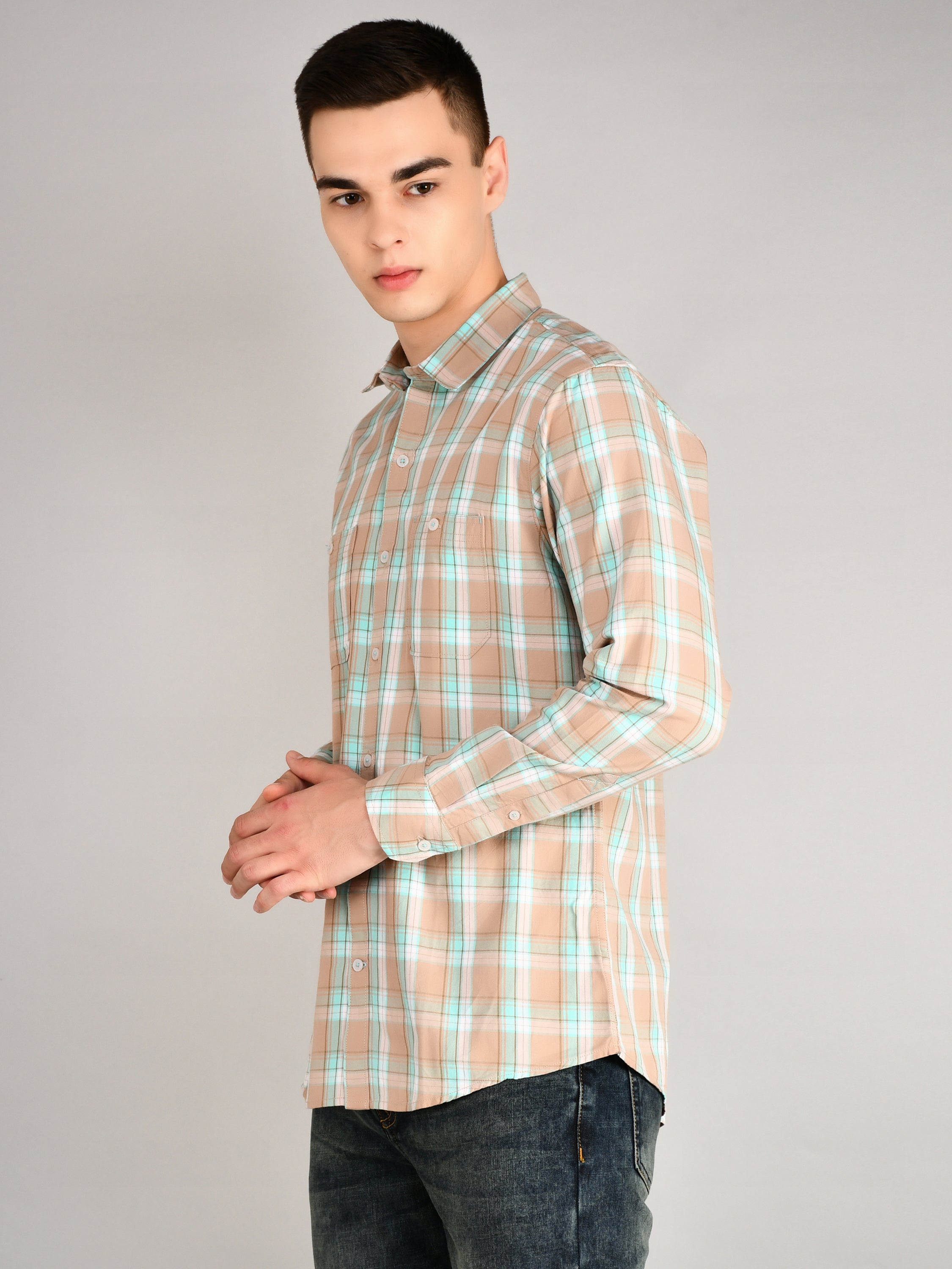 Tim Paris Mens Beige Checkered Shirt In Pure Cotton With A Regular Fit. This Shirt Blends Comfort With Style Effortlessly.