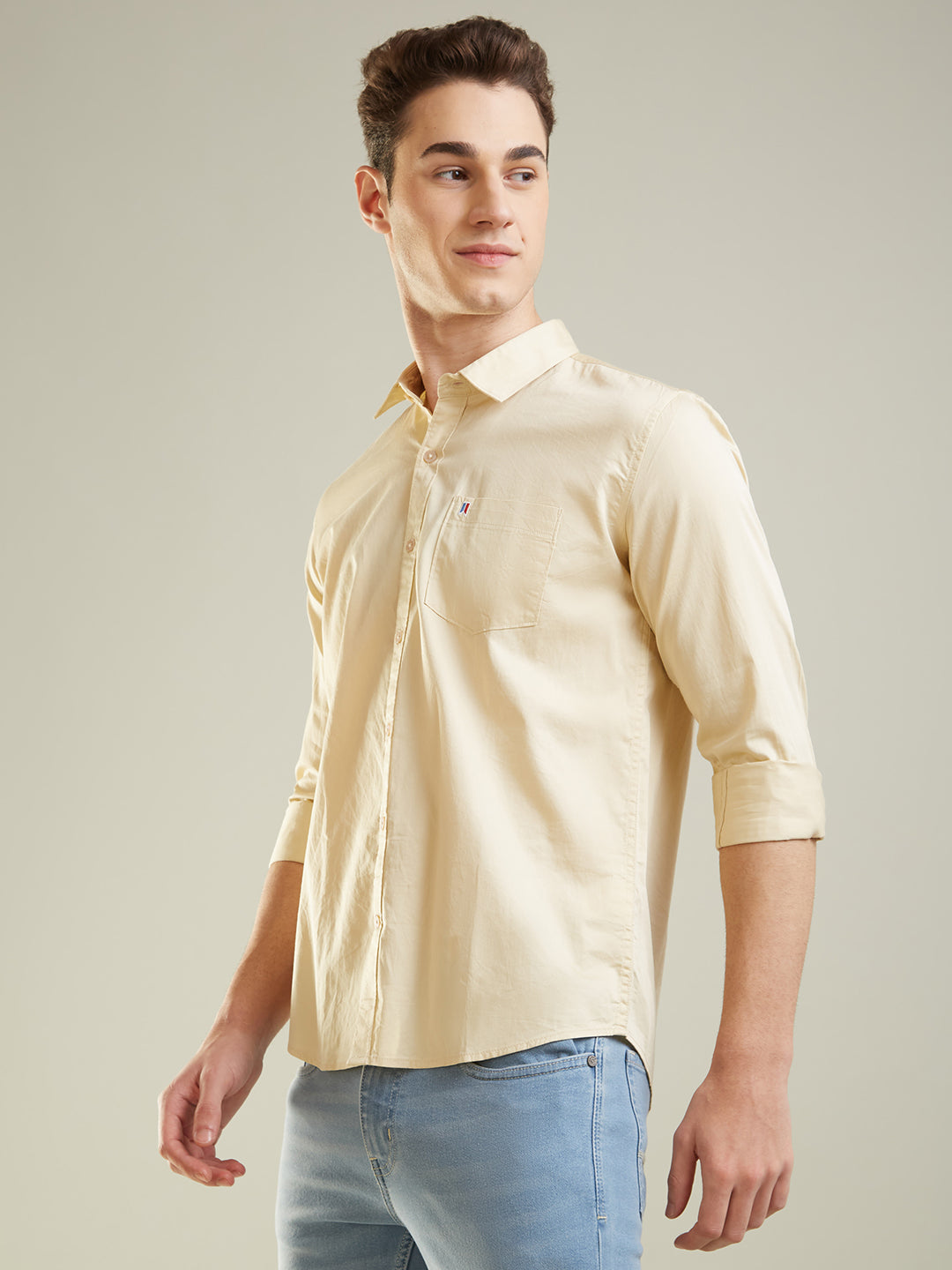 Tim Paris Mens Beige Solid Shirt In Pure Cotton With A Regular Fit. This Shirt Blends Comfort With Style Effortlessly.