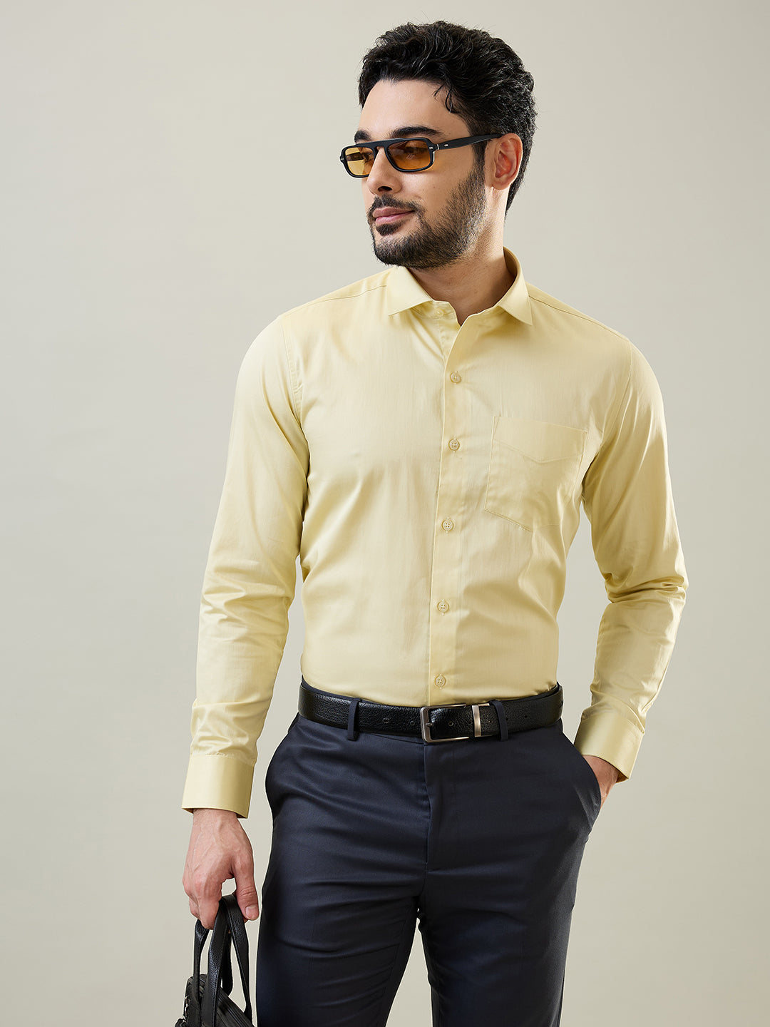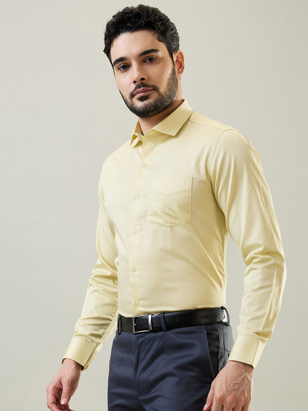 Tim Paris Mens Yellow Solid Formal Shirt In Pure Cotton With A Tailored. This Formal Shirt Blends Comfort With Style Effortlessly With The Style Effortlessly